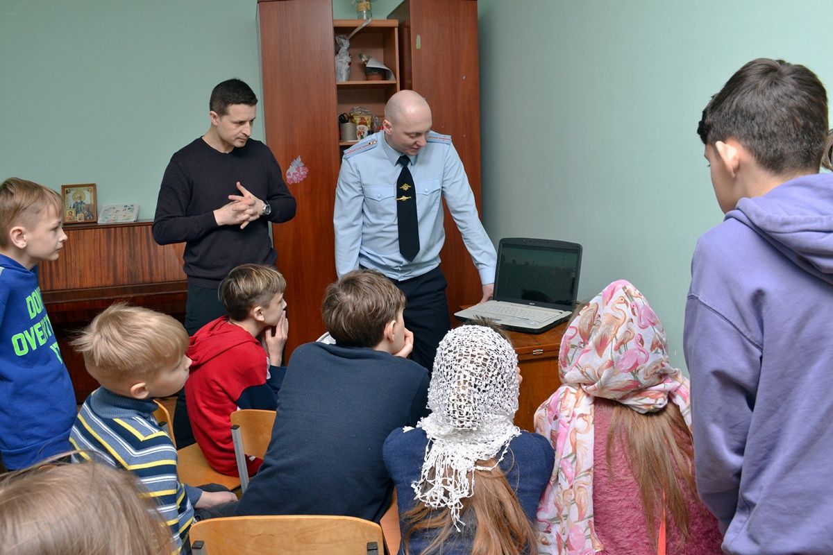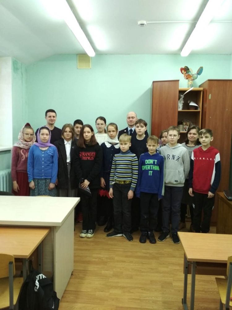 В завершение Павел Сергеевич, преподаватели и воспитанники воскресной школы решили продолжить дальнейшее общение и договорились о новой встрече – теперь уже в стенах Управления внутренних дел. На память дети сфотографировались со своим новым другом.