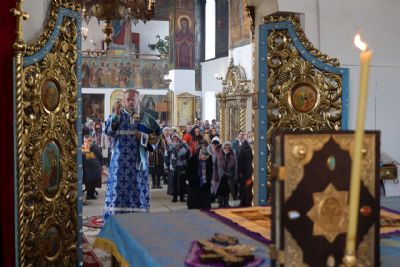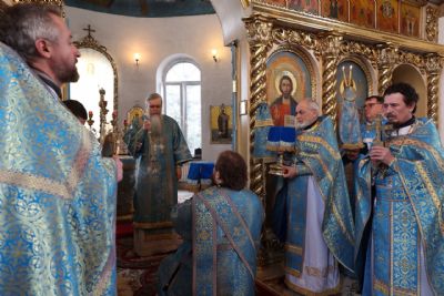 Его Преосвященству сослужили клирики собора, пел малый состав архиерейского хора.