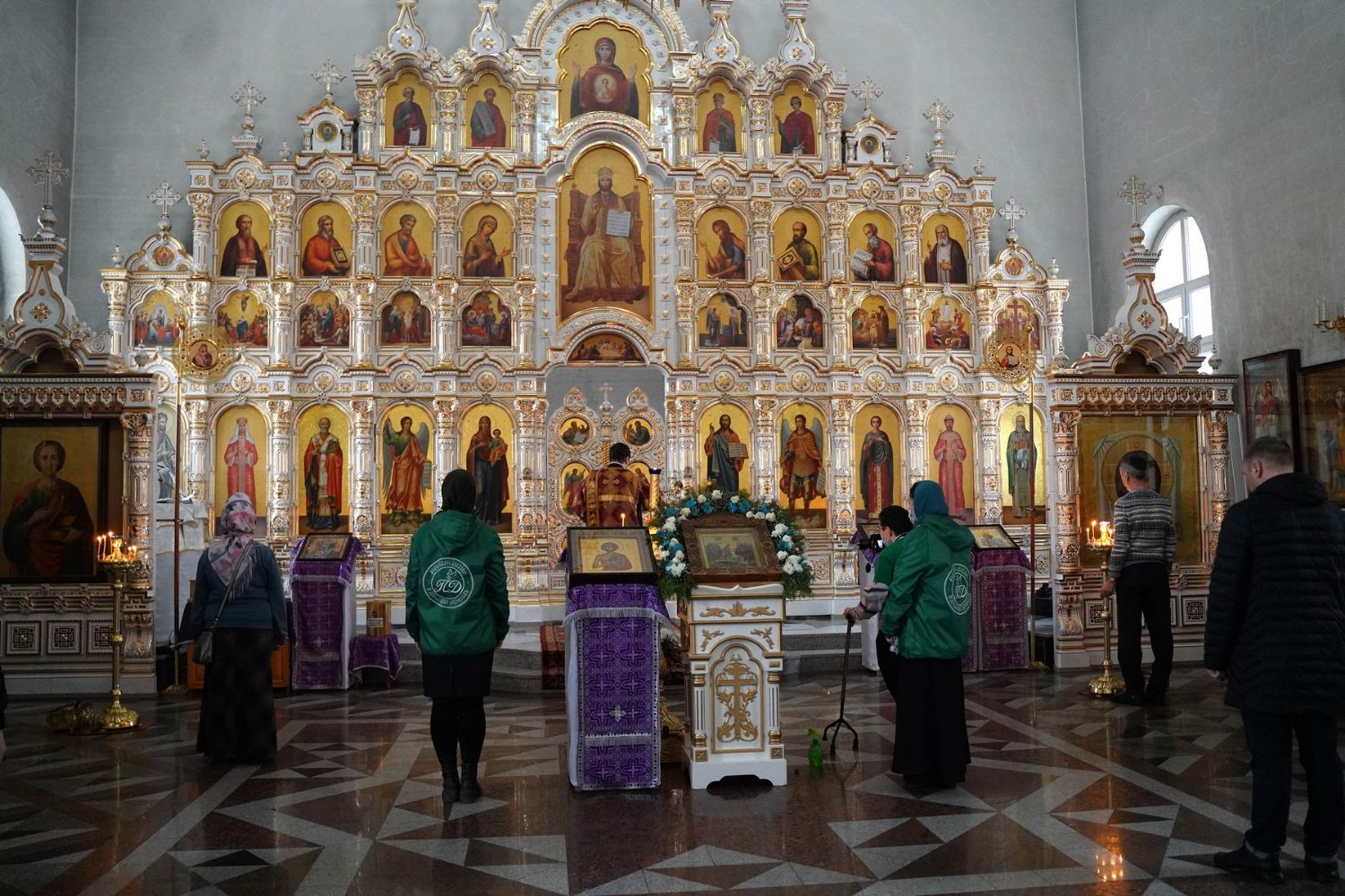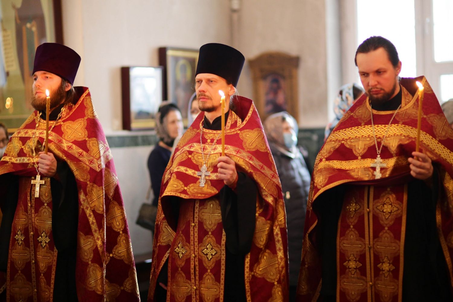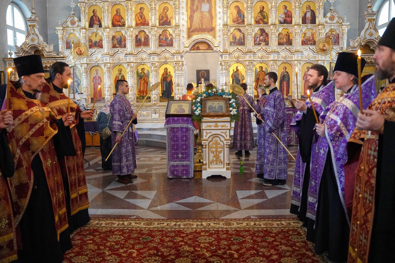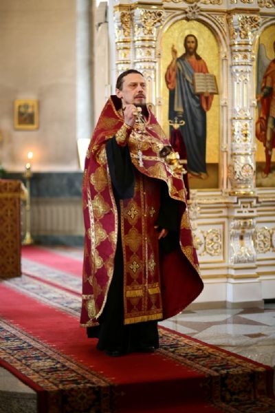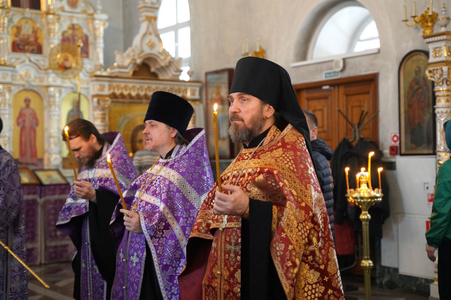Владыке сослужили секретарь Йошкар-Олинского епархиального управления иеромонах Серафим (Пасанаев), настоятель собора иерей Алексий Кирюшкин, клирики собора и протодиакон Михаил Козловский. Песнопения исполнял хор собора под управлением регента Алисы Вылегжаниной.