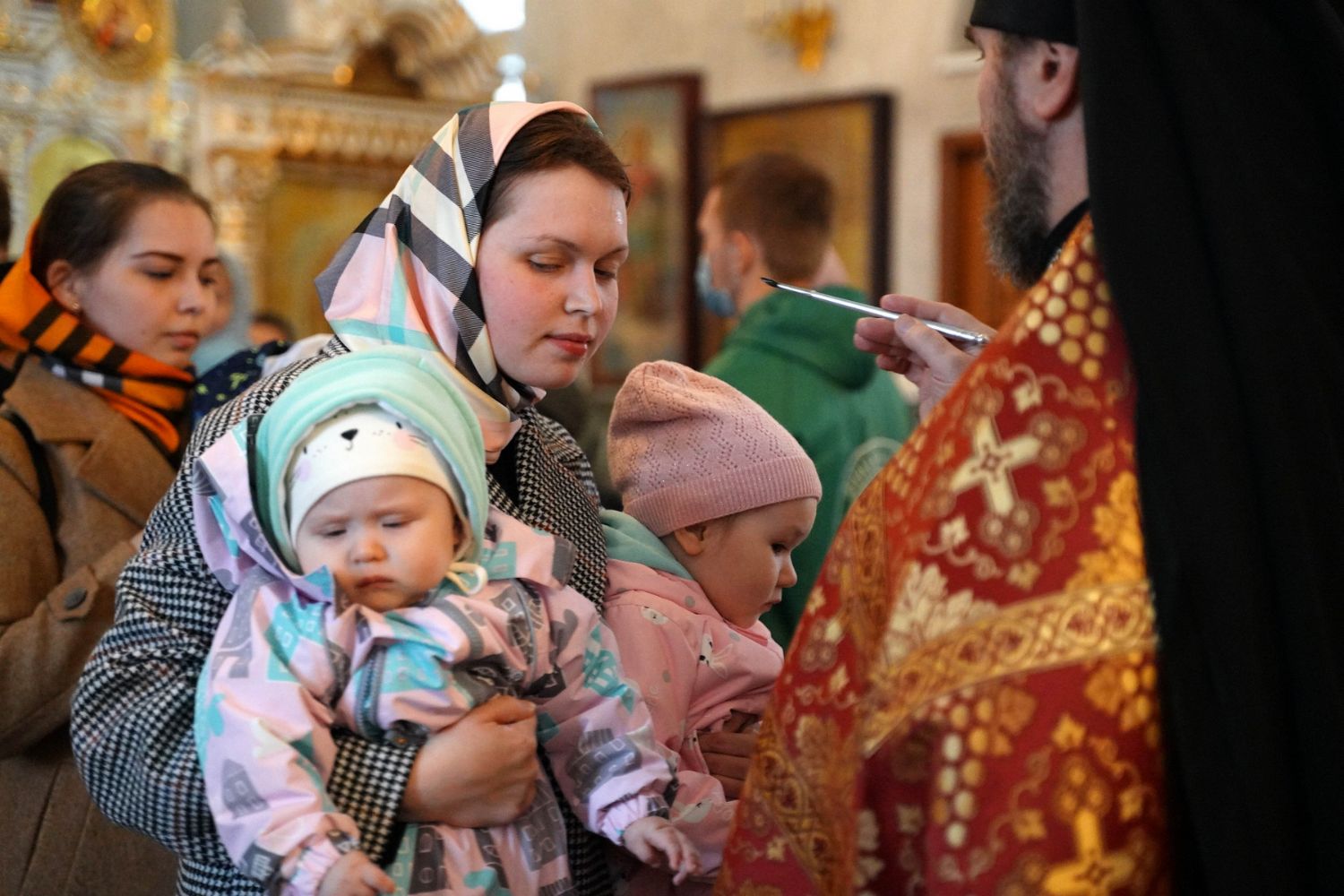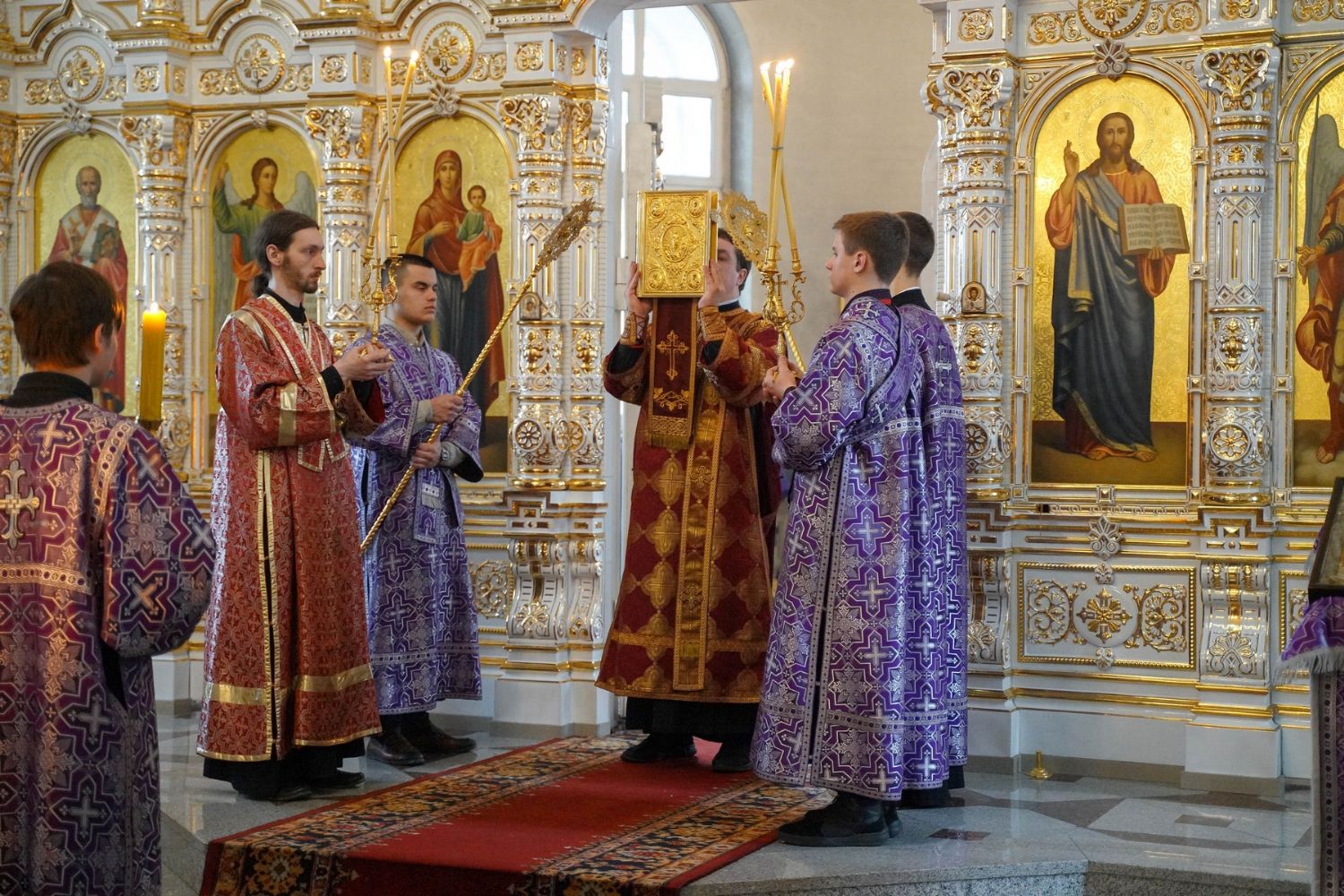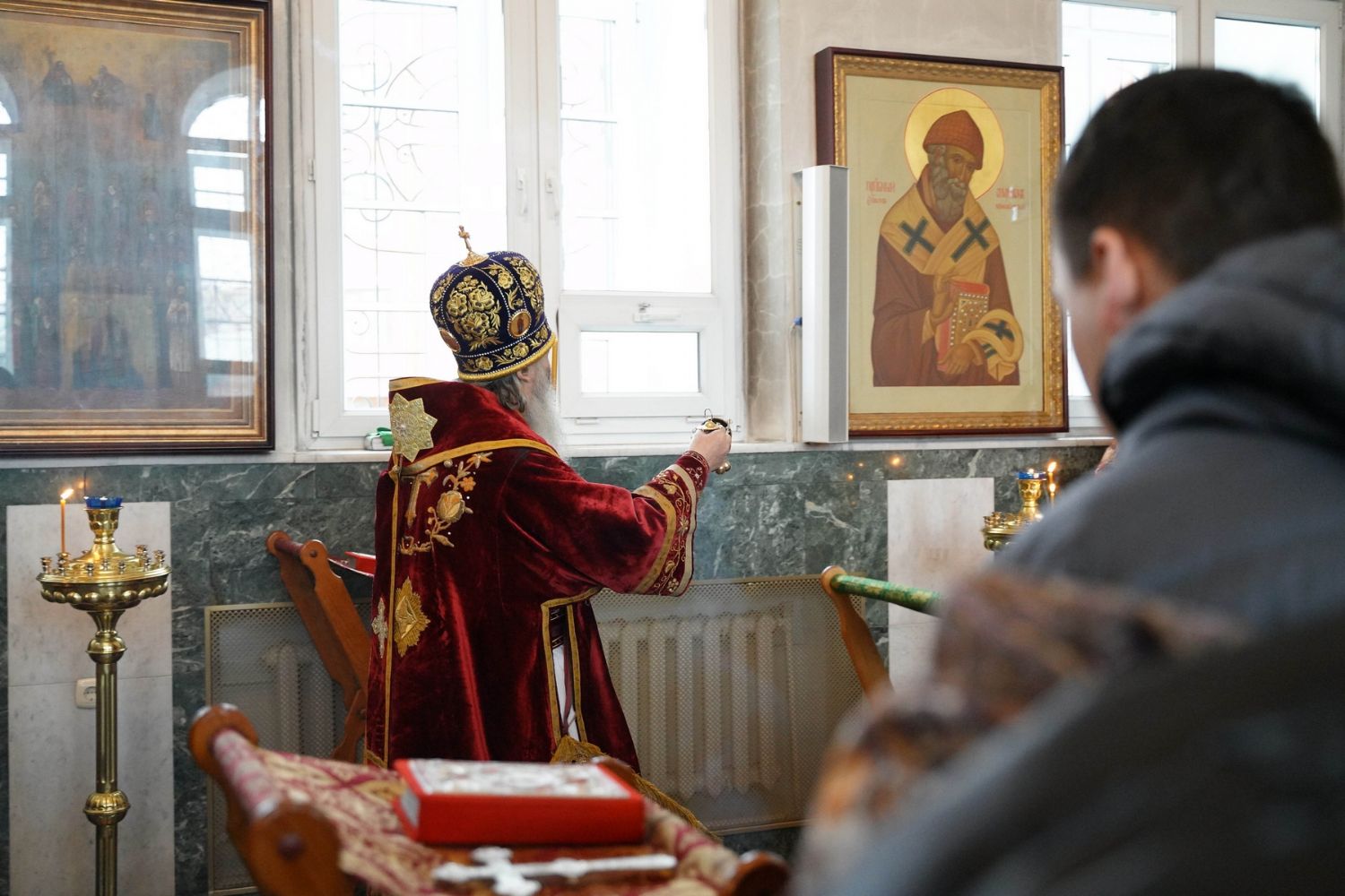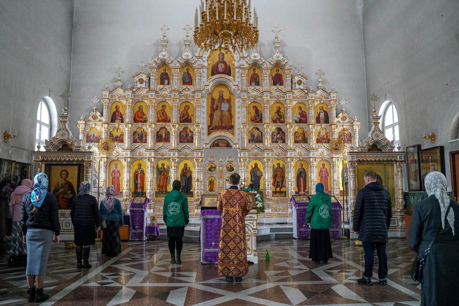 Владыке сослужили секретарь Йошкар-Олинского епархиального управления иеромонах Серафим (Пасанаев), настоятель собора иерей Алексий Кирюшкин, клирики собора и протодиакон Михаил Козловский. Песнопения исполнял хор собора под управлением регента Алисы Вылегжаниной.