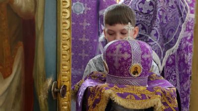 Его Преосвященству сослужили клирики собора. Песнопения исполняли два хора – архиерейский и детско-юношеский.