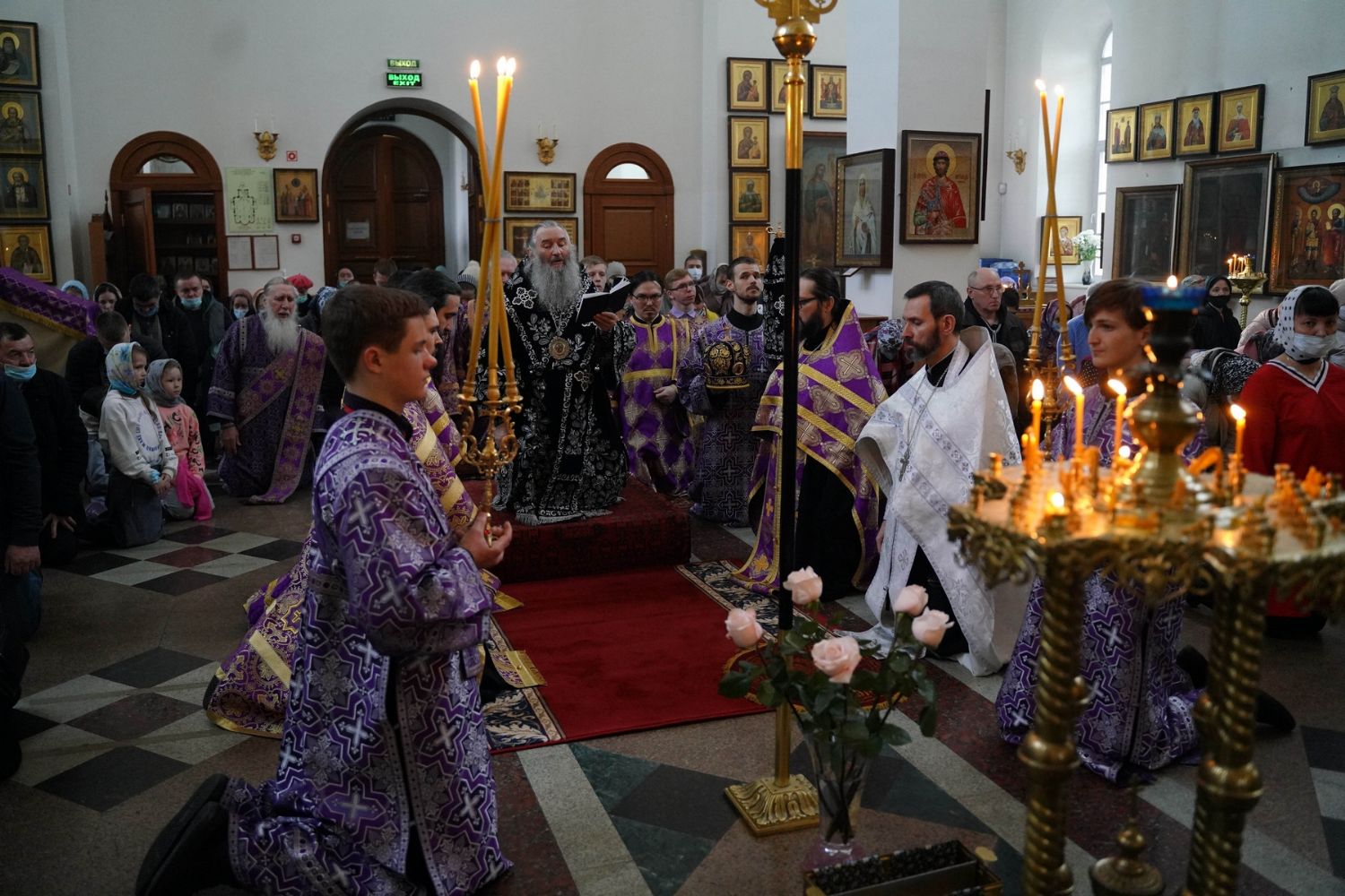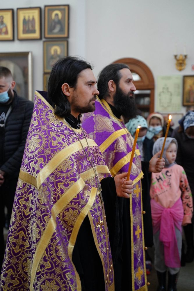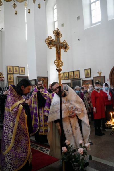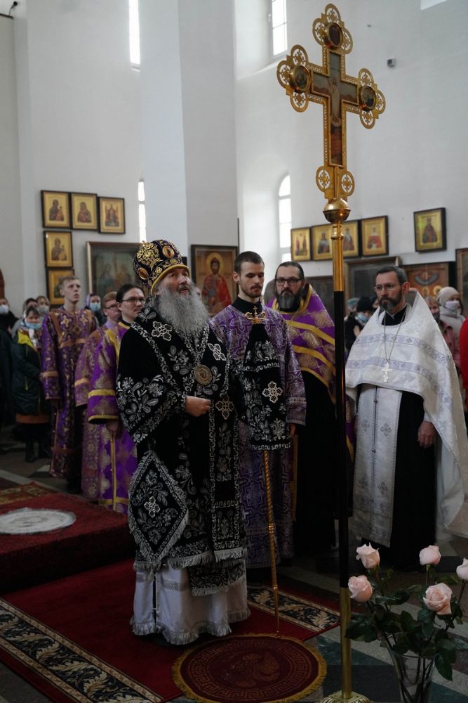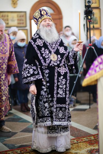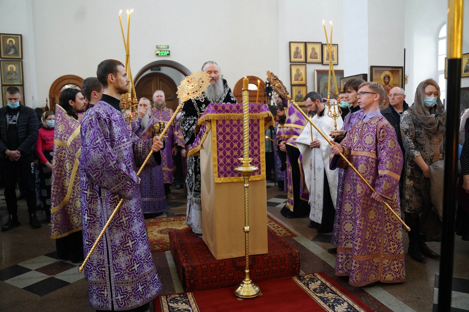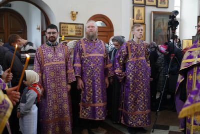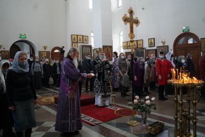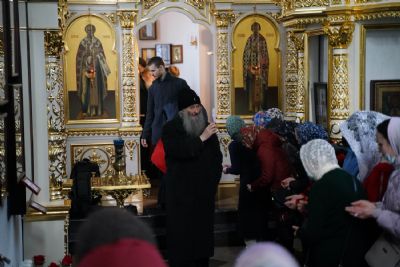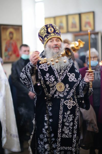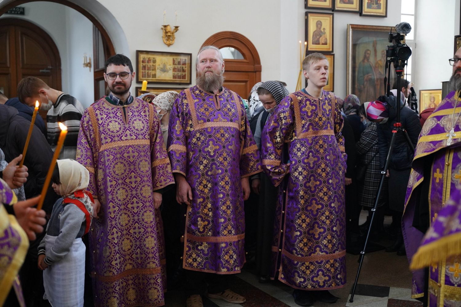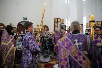 Владыке сослужили клирики храма и протодиакон Михаил Козловский. Песнопения исполнял хор храма под управлением регента Наталии Поповой.