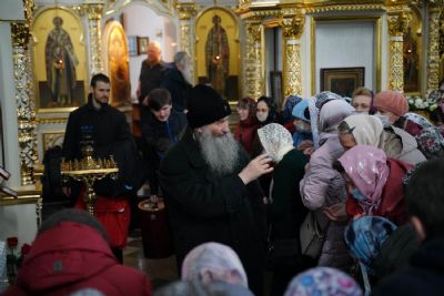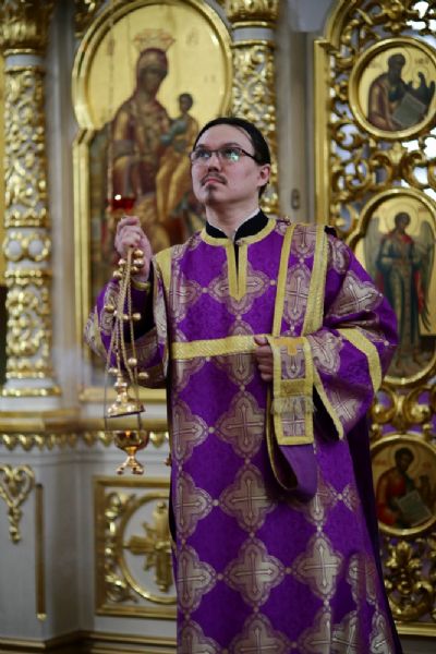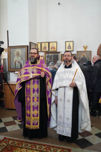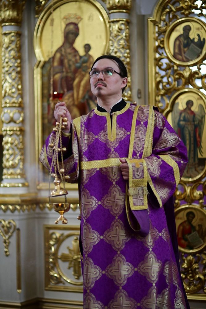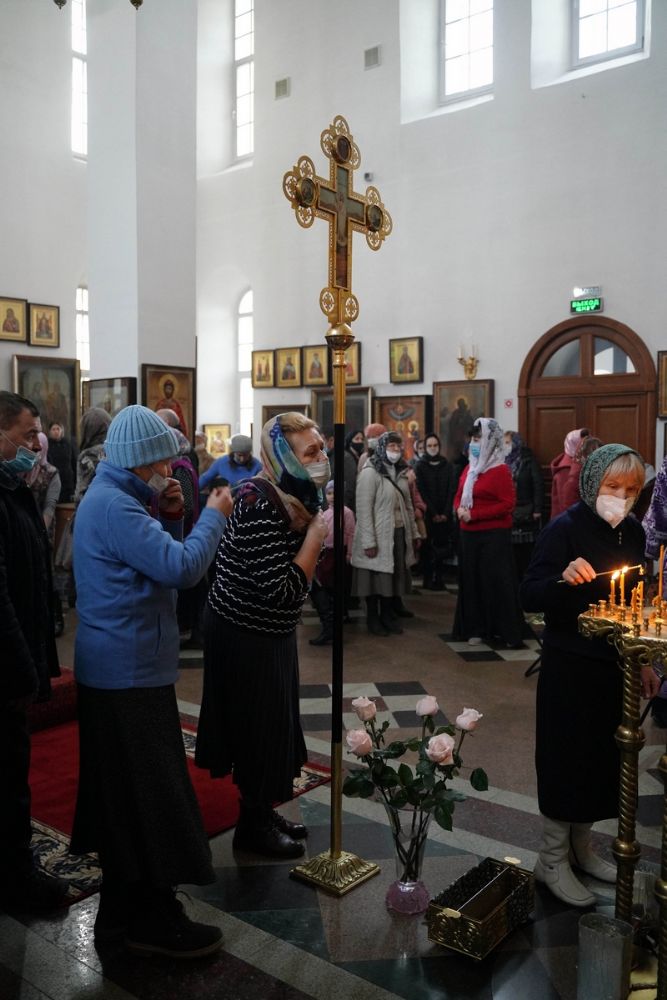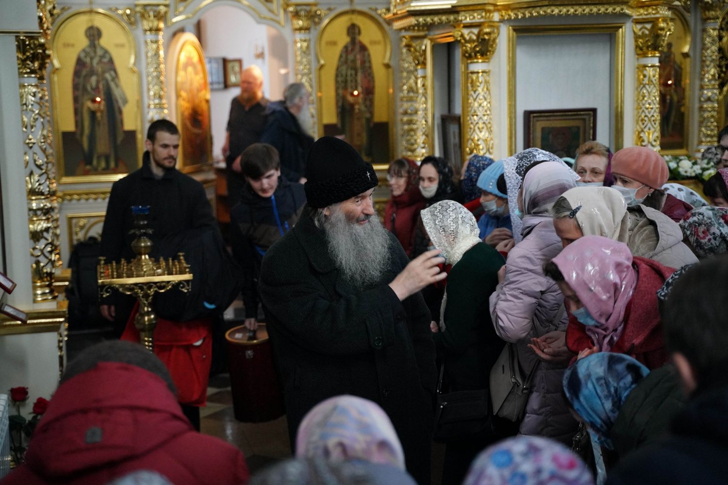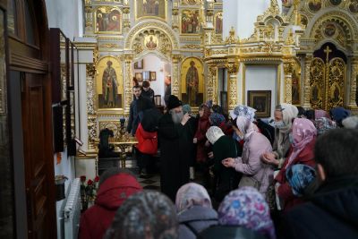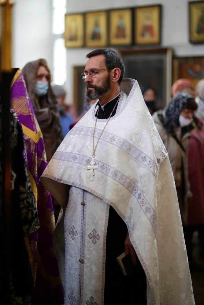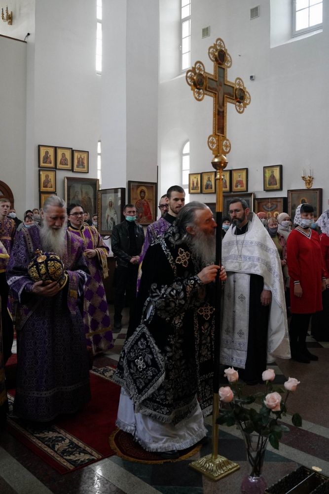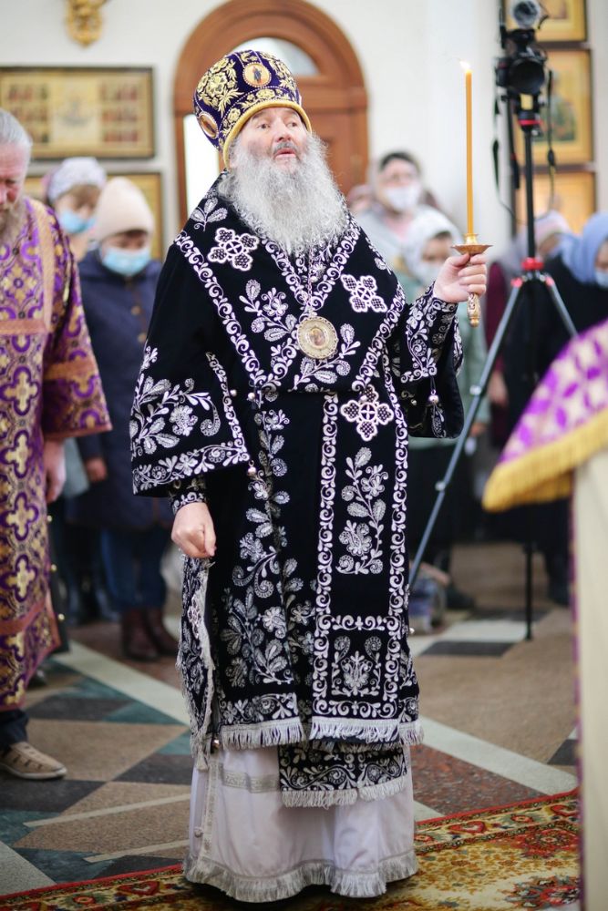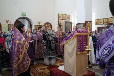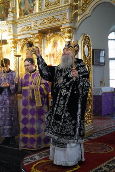 Владыке сослужили клирики храма и протодиакон Михаил Козловский. Песнопения исполнял хор храма под управлением регента Наталии Поповой.