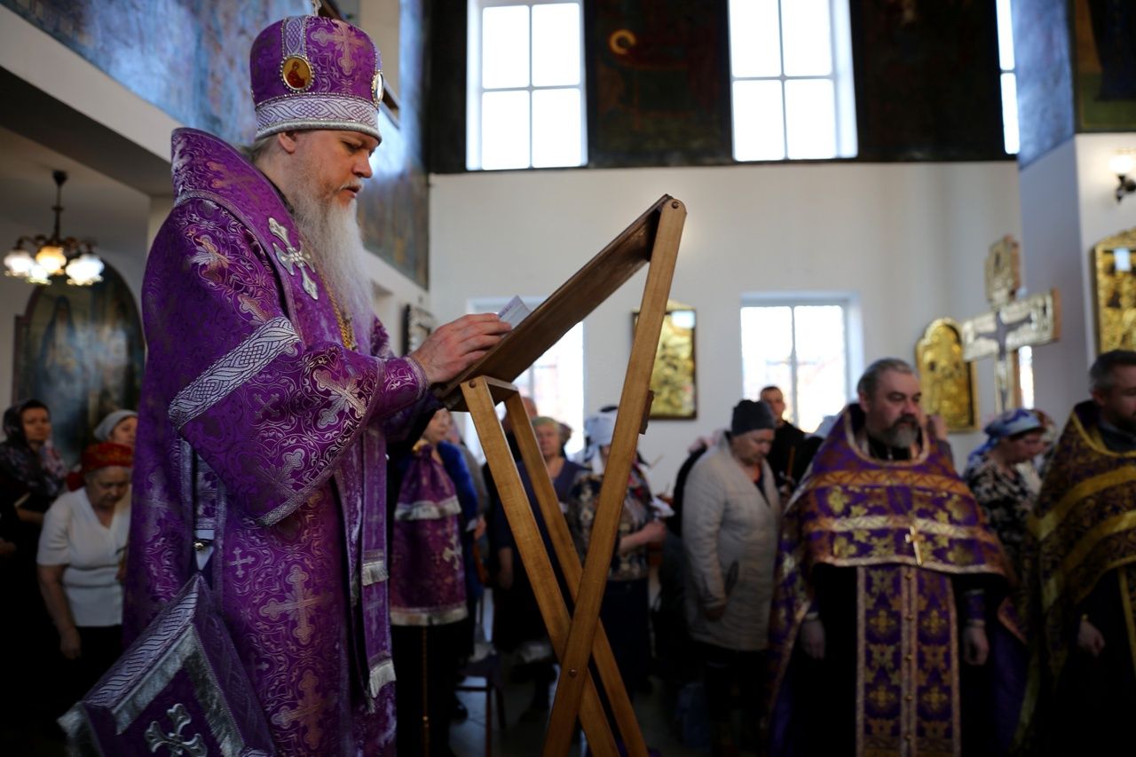 11 апреля епископ Волжский и Сернурский Феофан совершил таинство Соборования (Елеосвящения) в Никольском кафедральном соборе г. Волжска в сослужении духовенства собора.