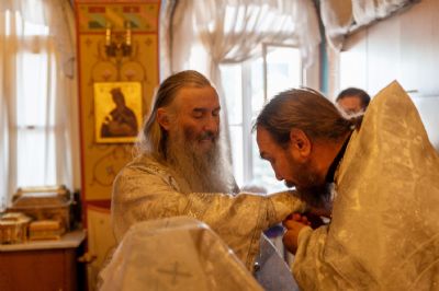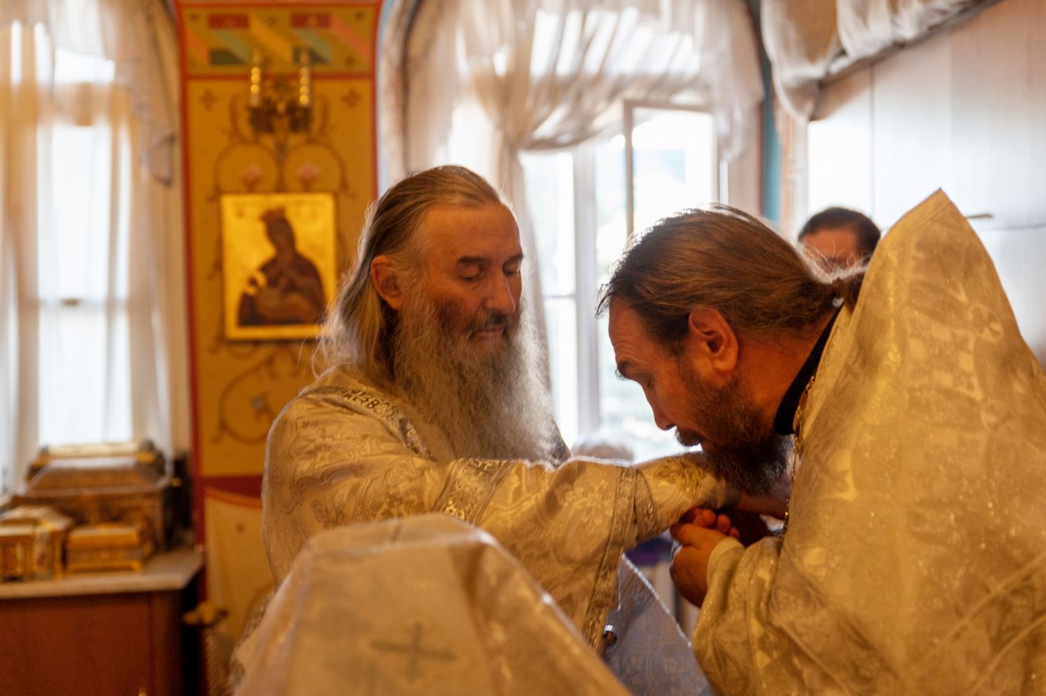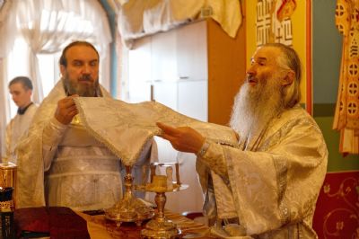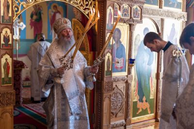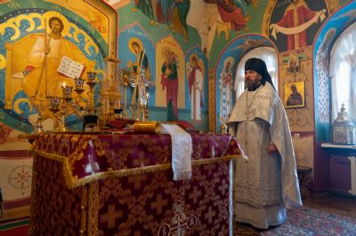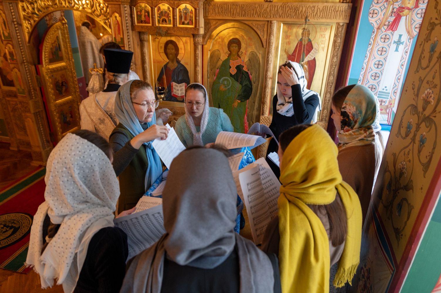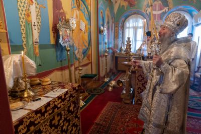 Его Высокопреосвященству сослужили секретарь Йошкар-Олинского епархиального управления иеромонах Серафим (Пасанаев) и протодиакон Михаил Козловский. Песнопения исполнял хор под руководством регента Татьяны Черновой.