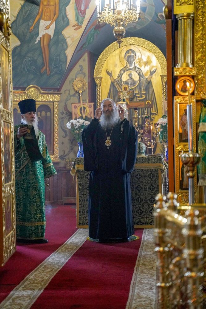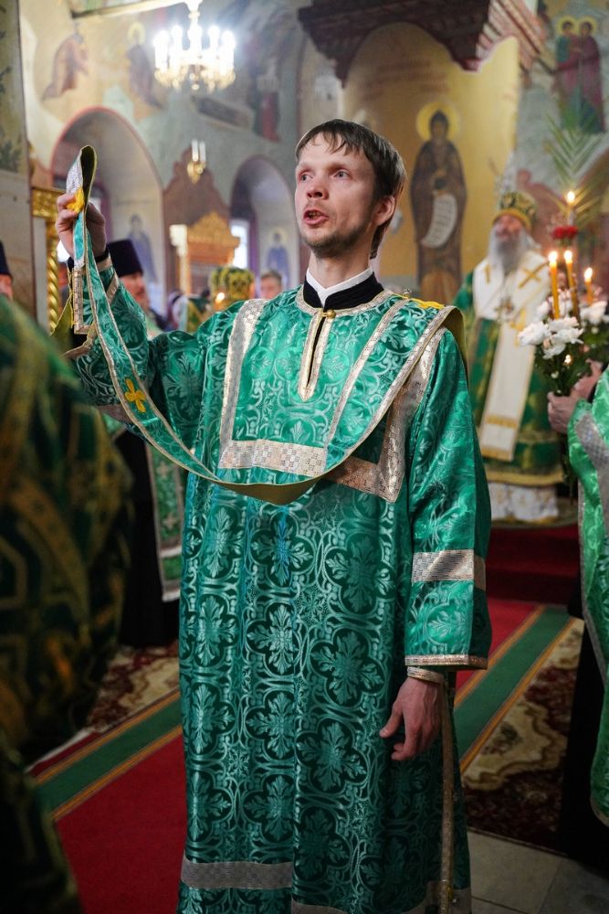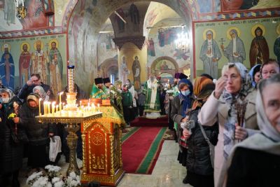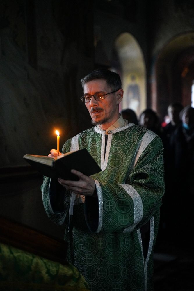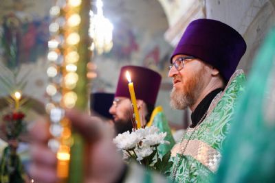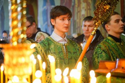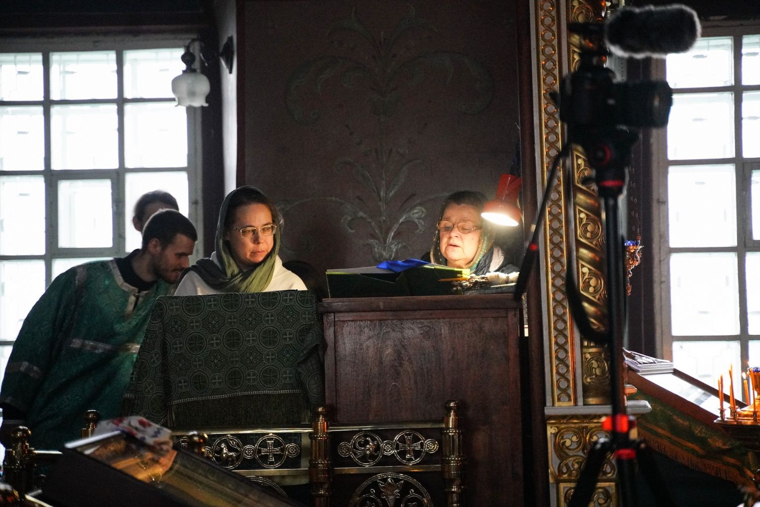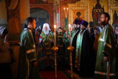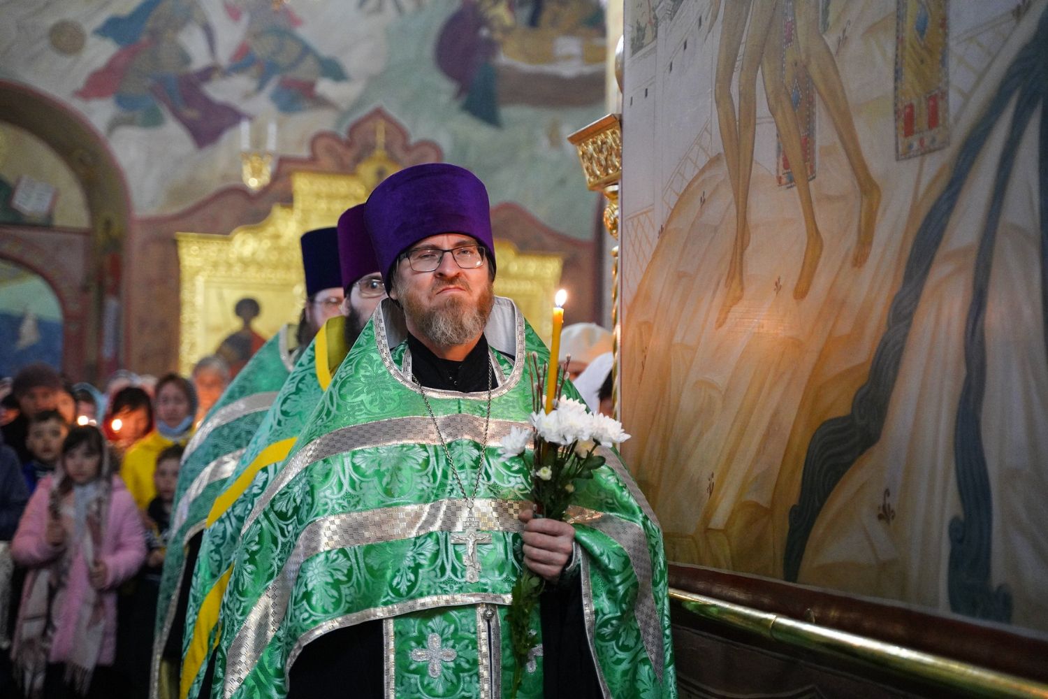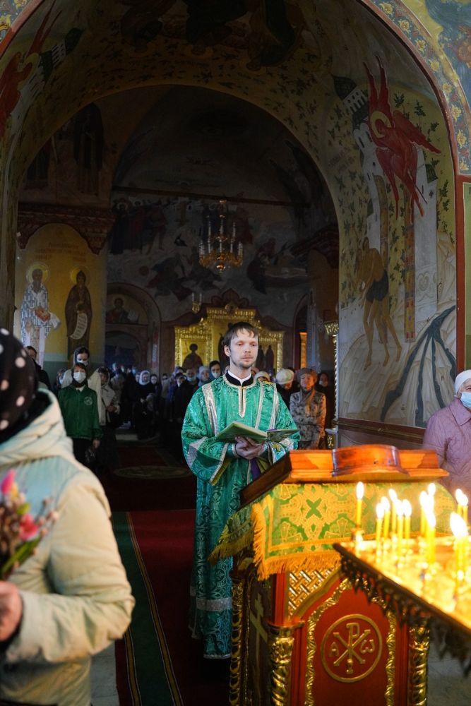 Владыке сослужили настоятель собора протоиерей Евгений Кутырев, клирики собора и протодиакон Михаил Козловский. Песнопения исполнял хор собора под управлением регента Ангелины Бабиной.