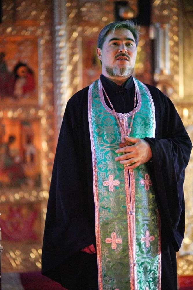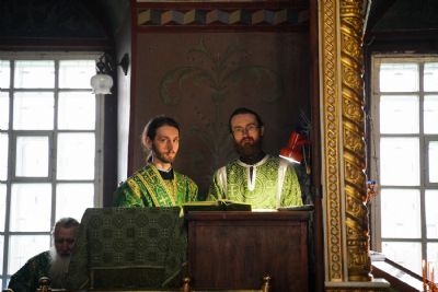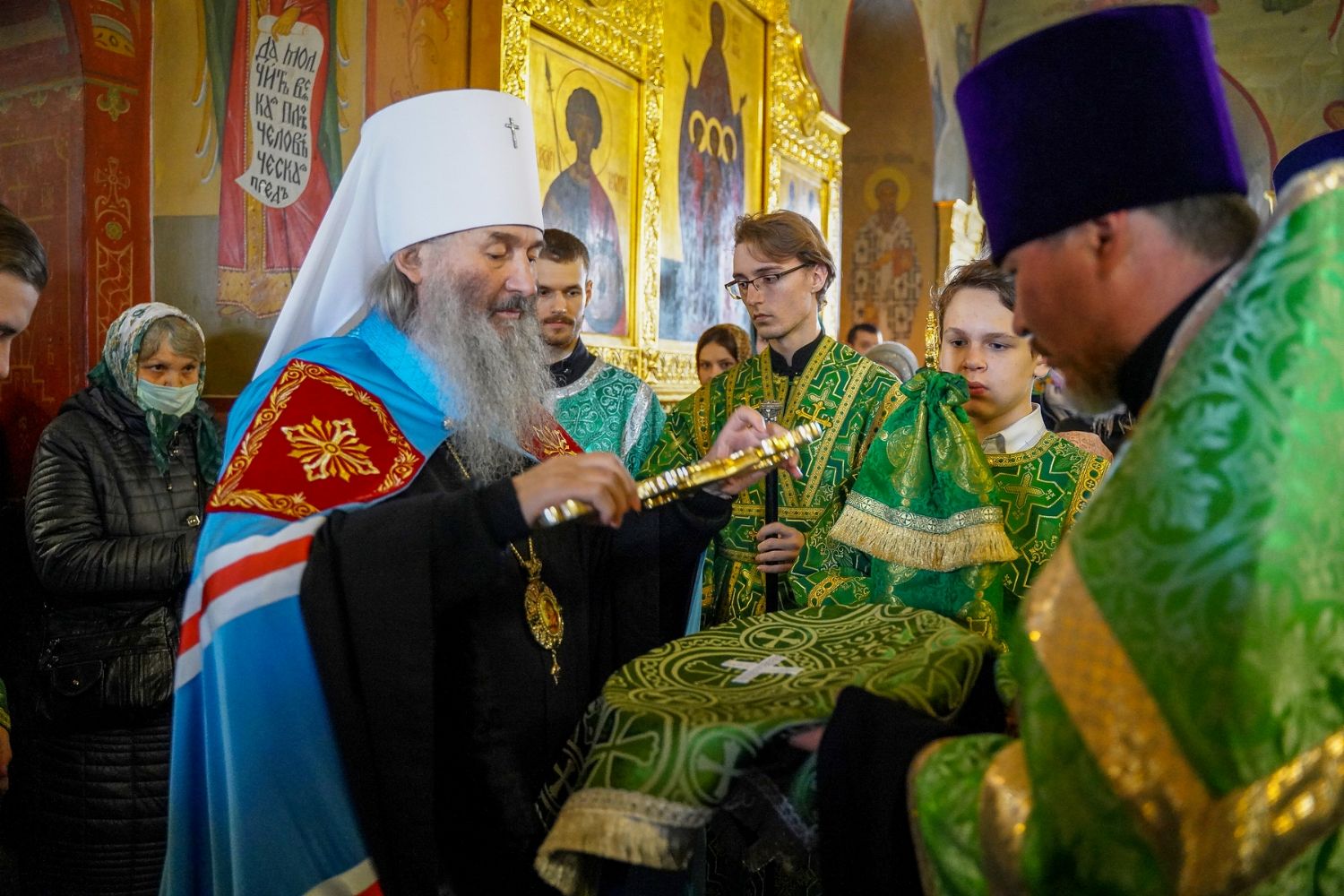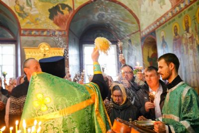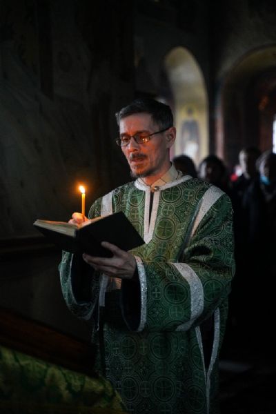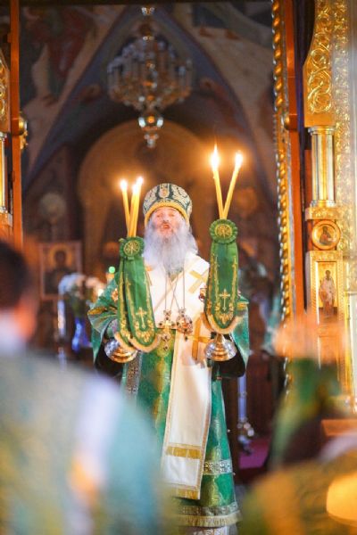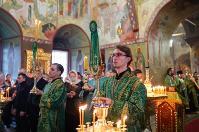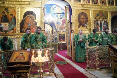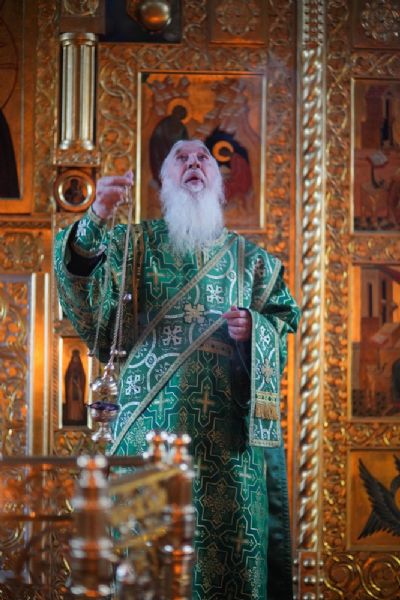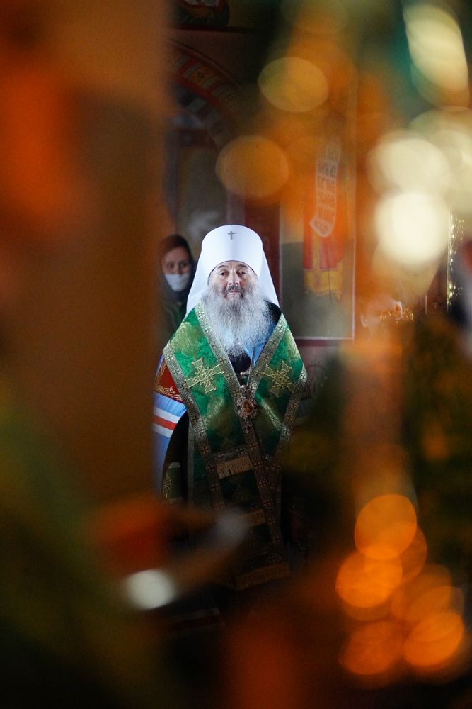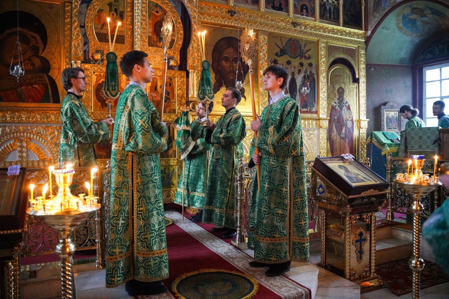 Владыке сослужили настоятель собора протоиерей Евгений Кутырев, клирики собора и протодиакон Михаил Козловский. Песнопения исполнял хор собора под управлением регента Ангелины Бабиной.