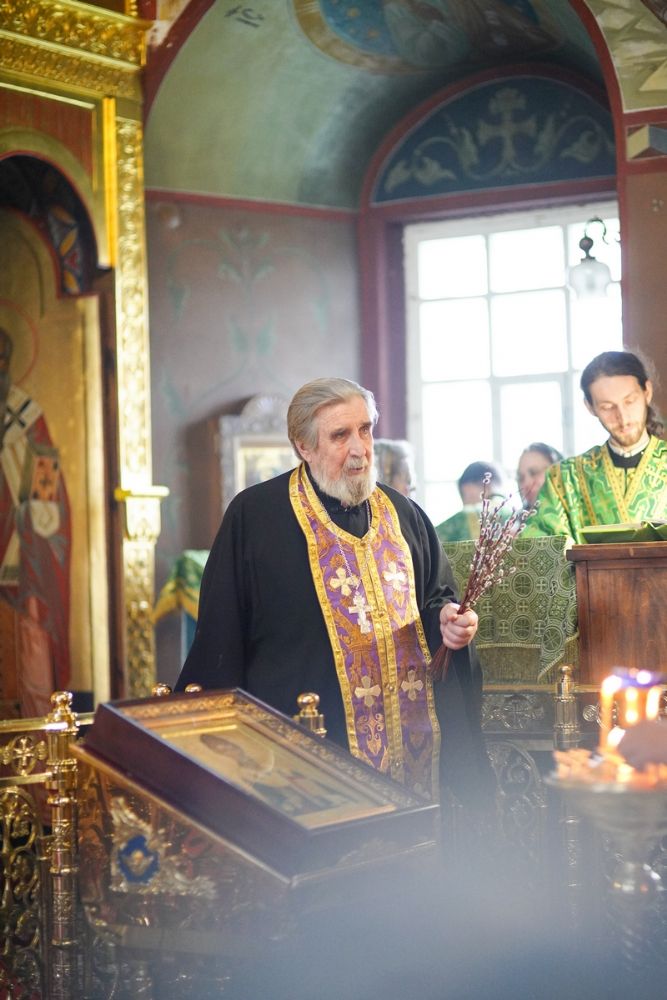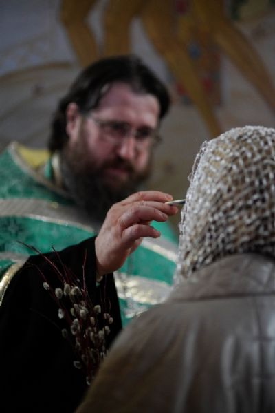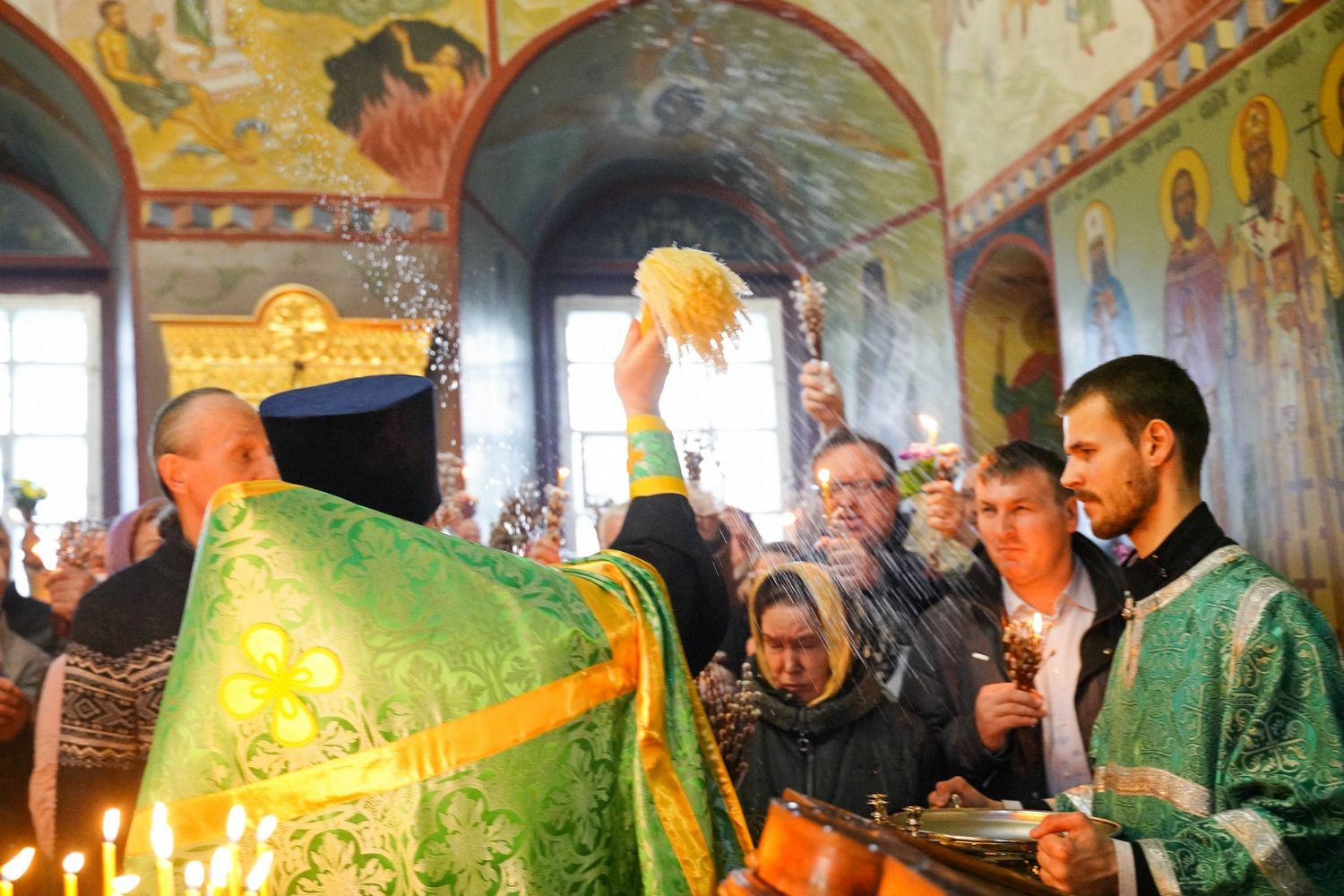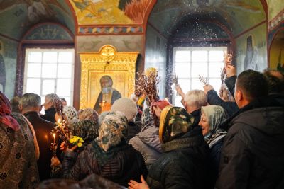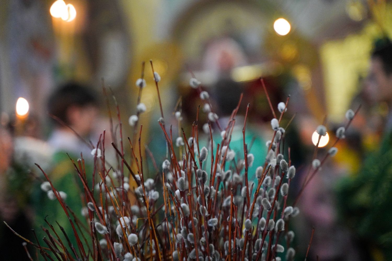 После чтения Евангелия была вознесена особая молитва на освящение ваий, совершено каждение и окропление святой водой освящаемых вербных ветвей.