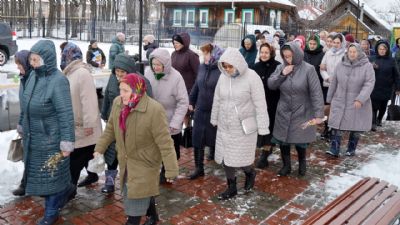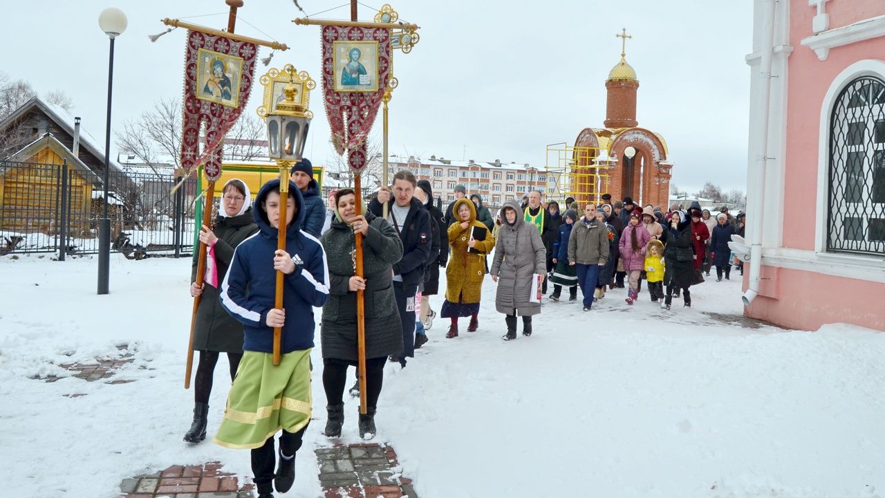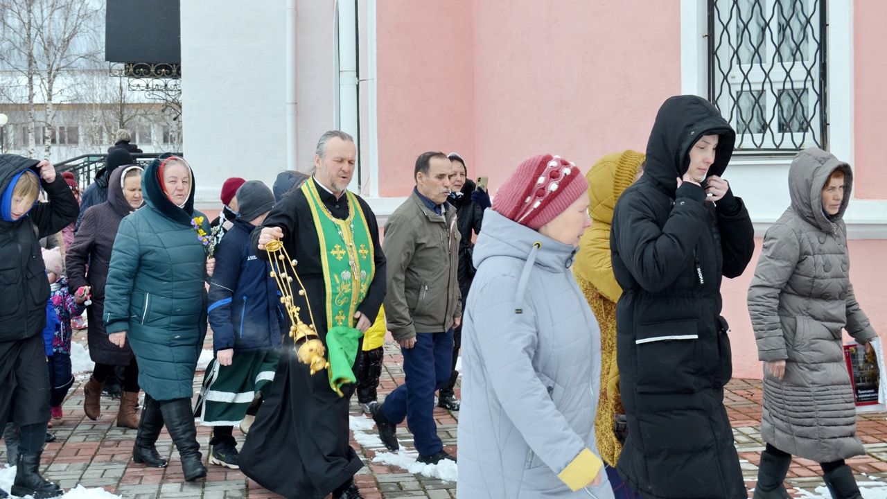 Праздничную Божественную литургию совершил настоятель храма протоиерей Димитрий Вылекжанин. После богослужения прошел крестный ход вокруг храма – верующие несли чтимую храмовую икону Входа Господня в Иерусалим и веточки вербы.
