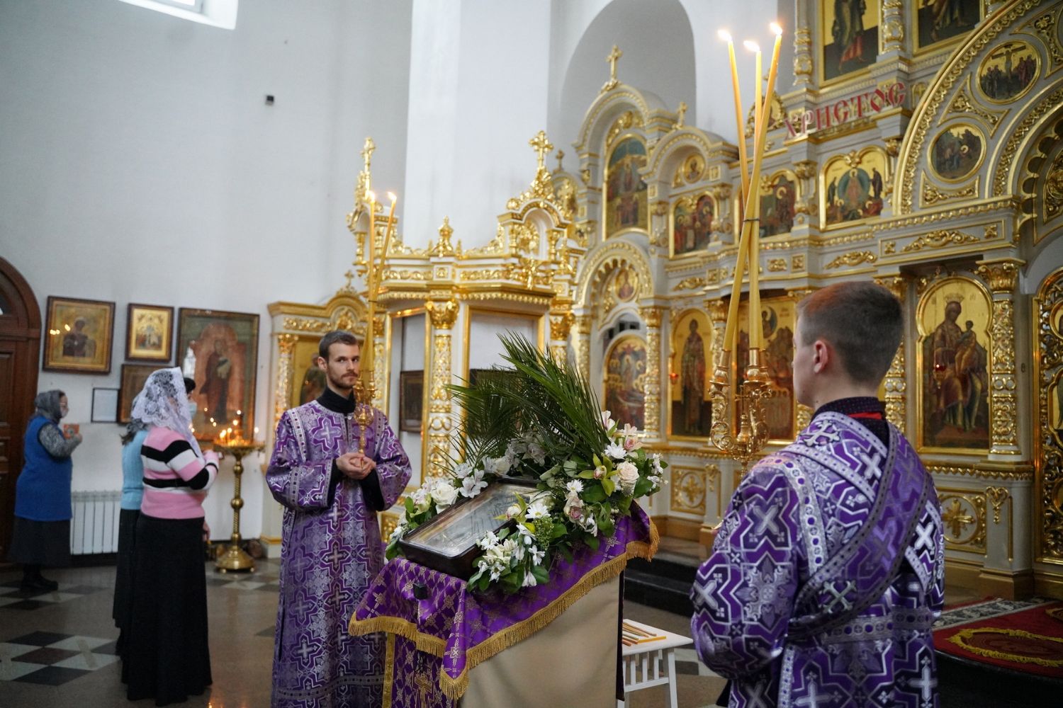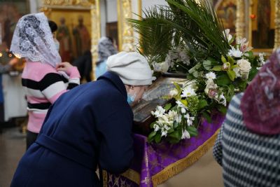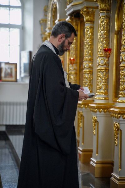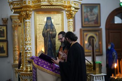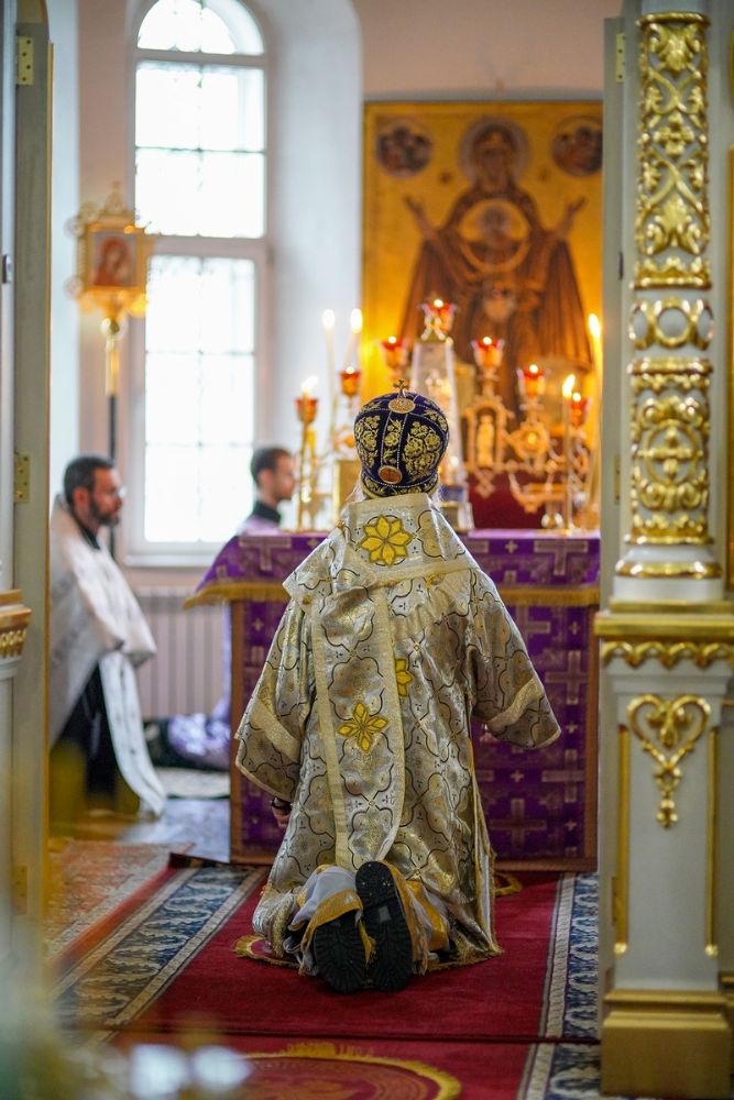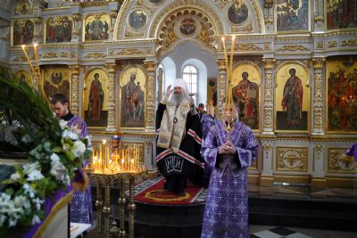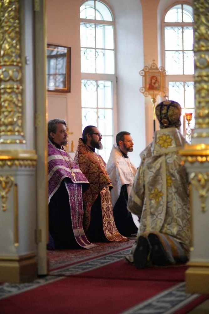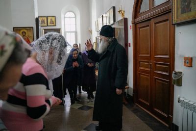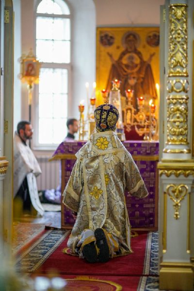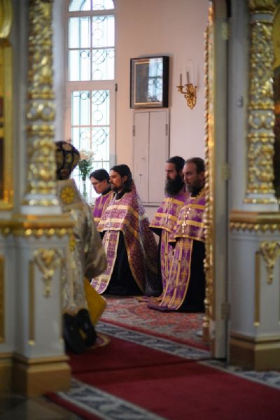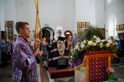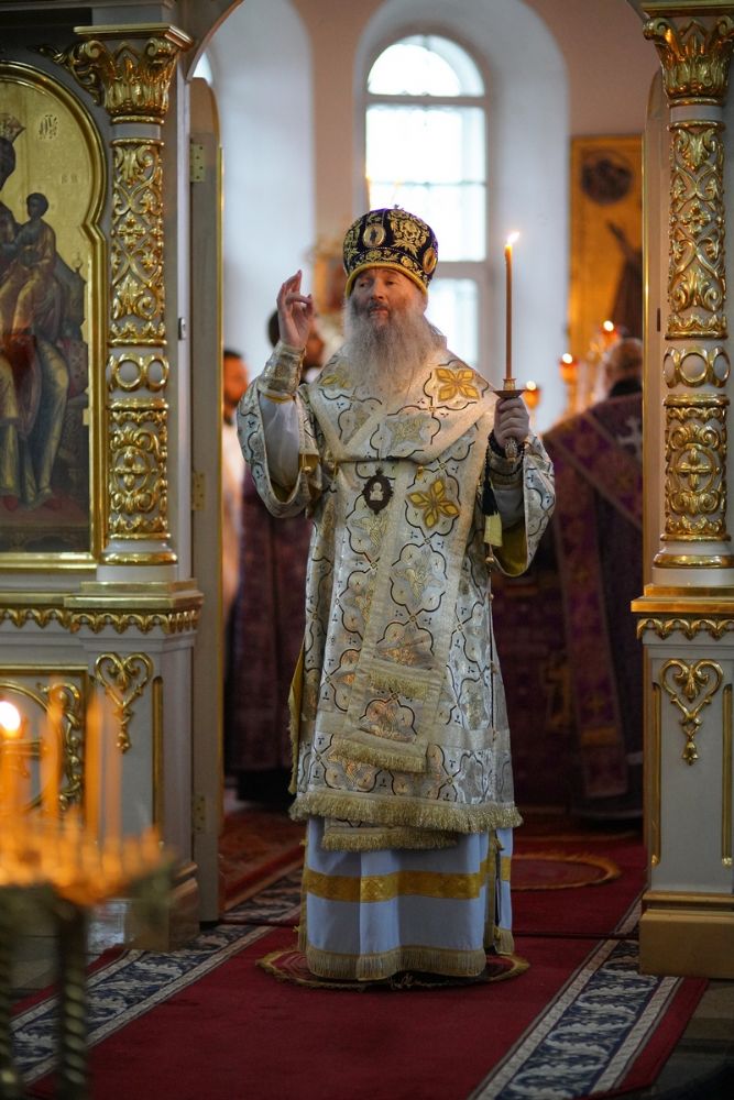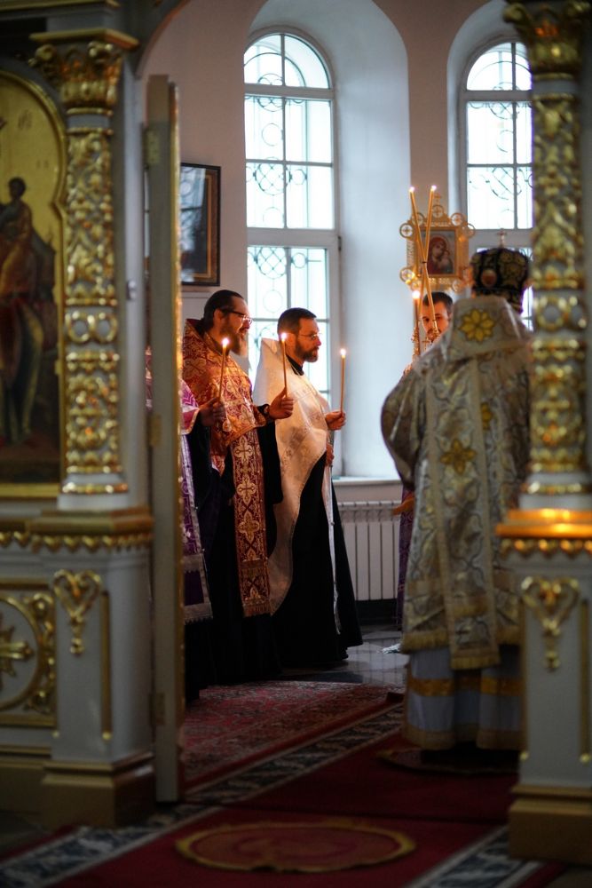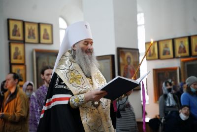 Владыке сослужили секретарь епархиального управления иеромонах Серафим (Пасанаев), настоятель храма иерей Александр Лоскутов, клирики храма и протодиакон Михаил Козловский. Песнопения исполнял хор храма под руководством регента Наталии Поповой.