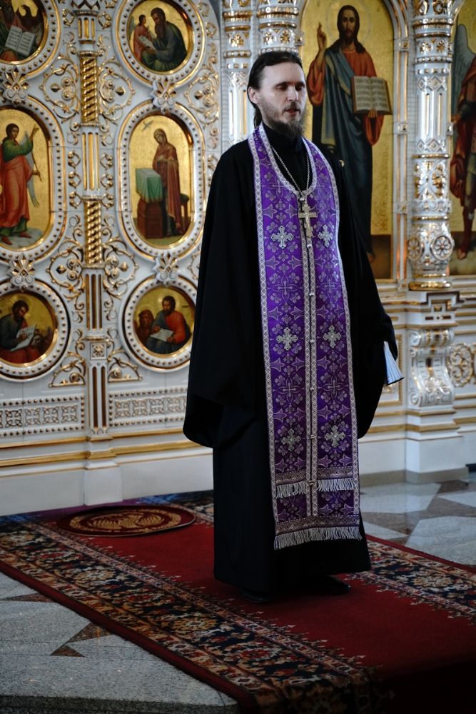 Владыке сослужили секретарь Йошкар-Олинского епархиального управления иеромонах Серафим (Пасанаев), настоятель собора иерей Алексий Кирюшкин, клирики собора и протодиакон Михаил Козловский. Песнопения исполнял хор собора под управлением регента Алисы Вылегжаниной.
