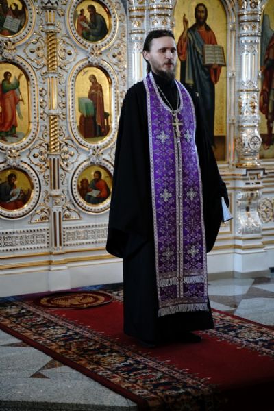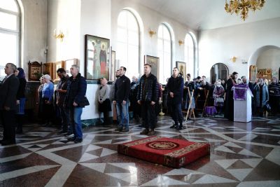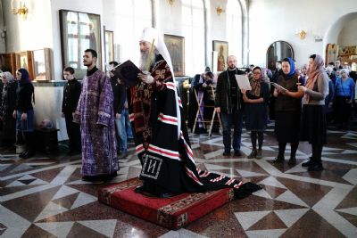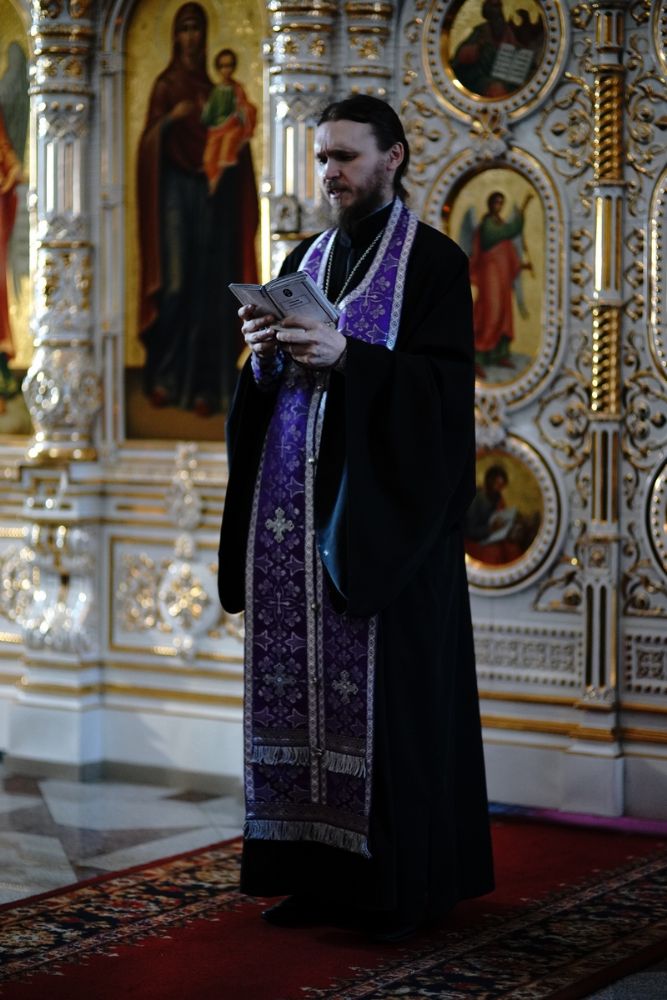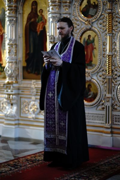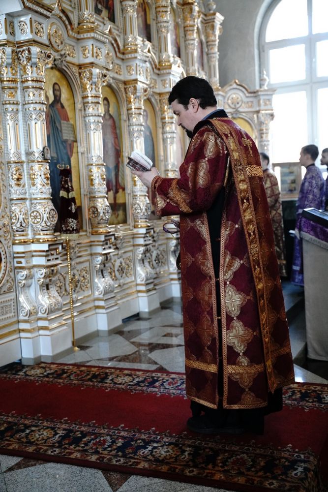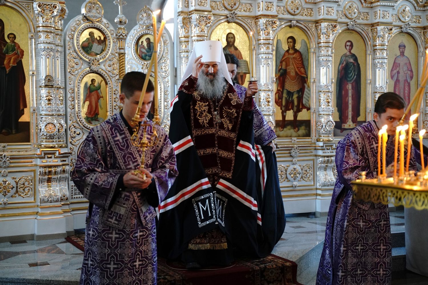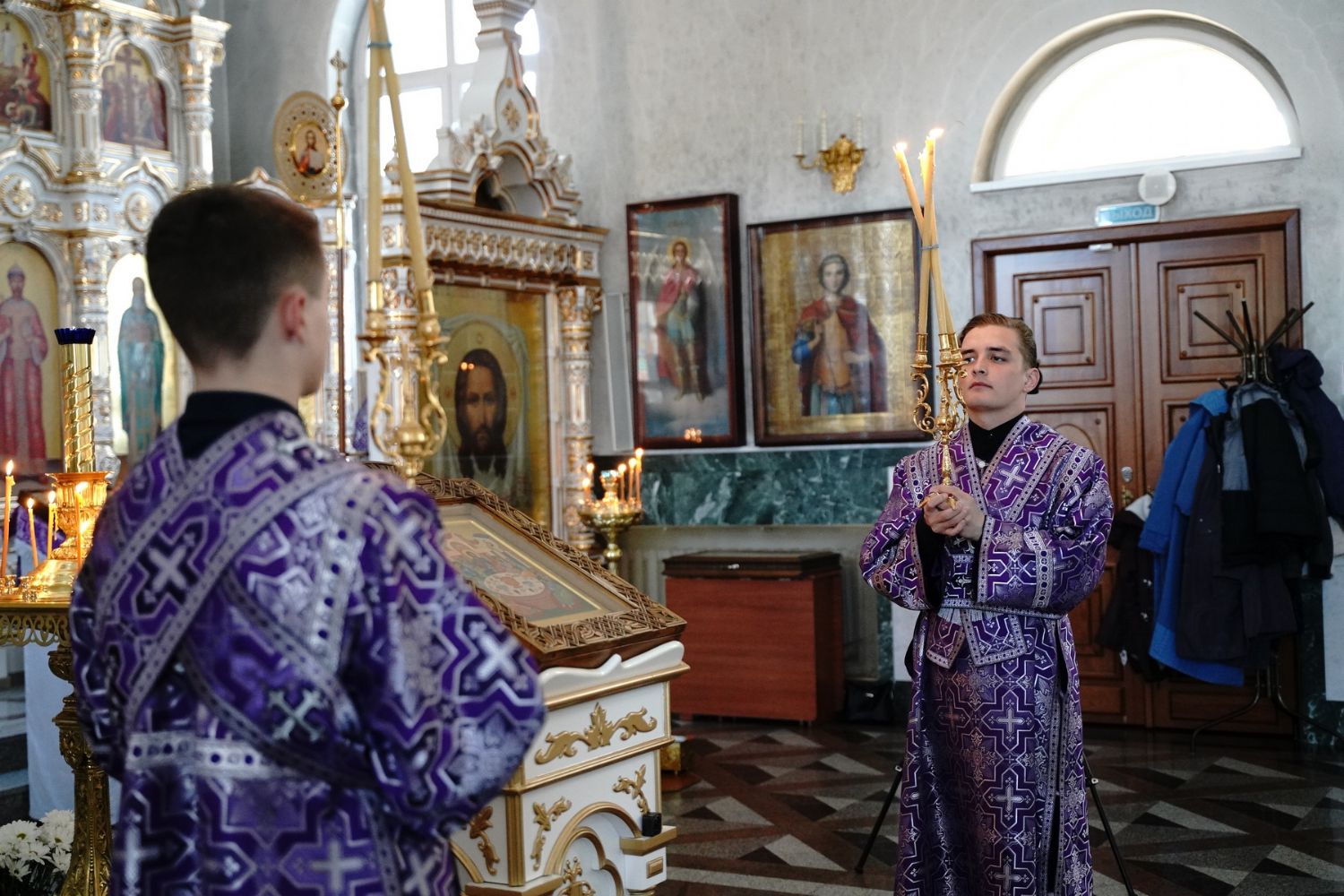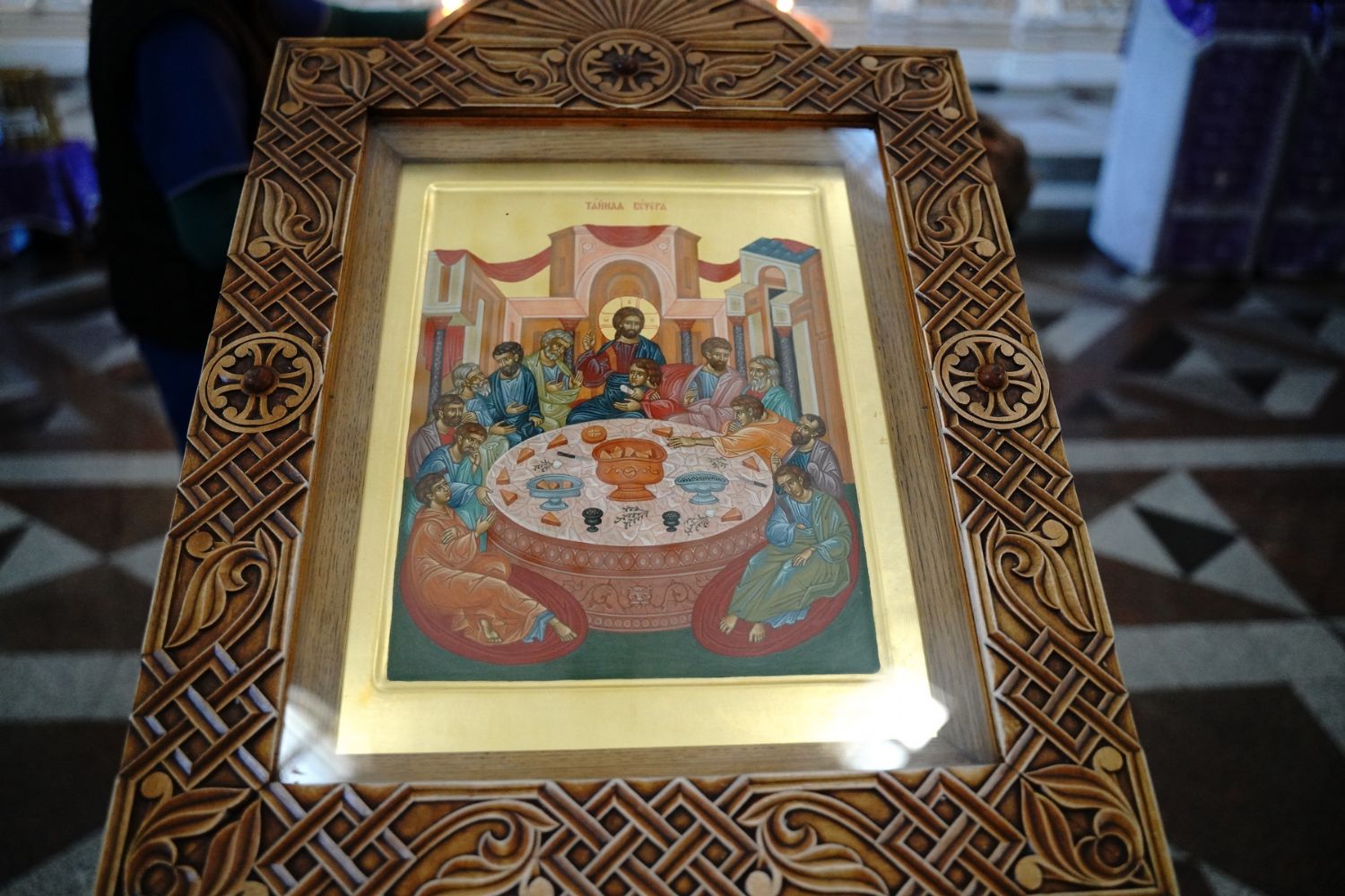 На малом повечерии в центре храма митрополит Иоанн прочитал трипеснец из канона преподобного Андрея Критского, посвященный воспоминанию Тайной Вечери и предательству Иуды.