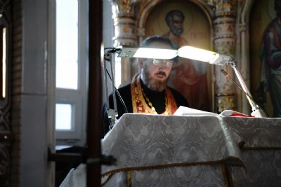На утрене в алтаре владыка прочитал отрывок из Евангелия от Луки (22 глава, 1-39) о Тайной Вечере Христа с учениками.