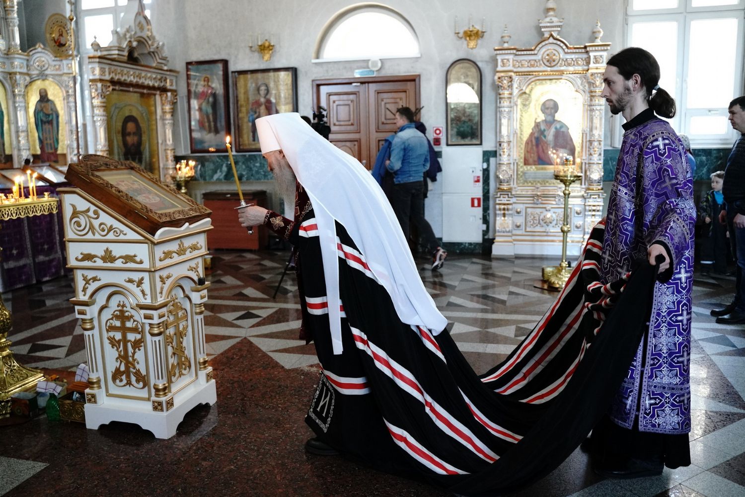 20 апреля, накануне дня воспоминания Тайной Вечери (установления таинства Евхаристии – Литургии), митрополит Иоанн возглавил малое повечерие и утреню в Воскресенском соборе г. Йошкар-Олы.