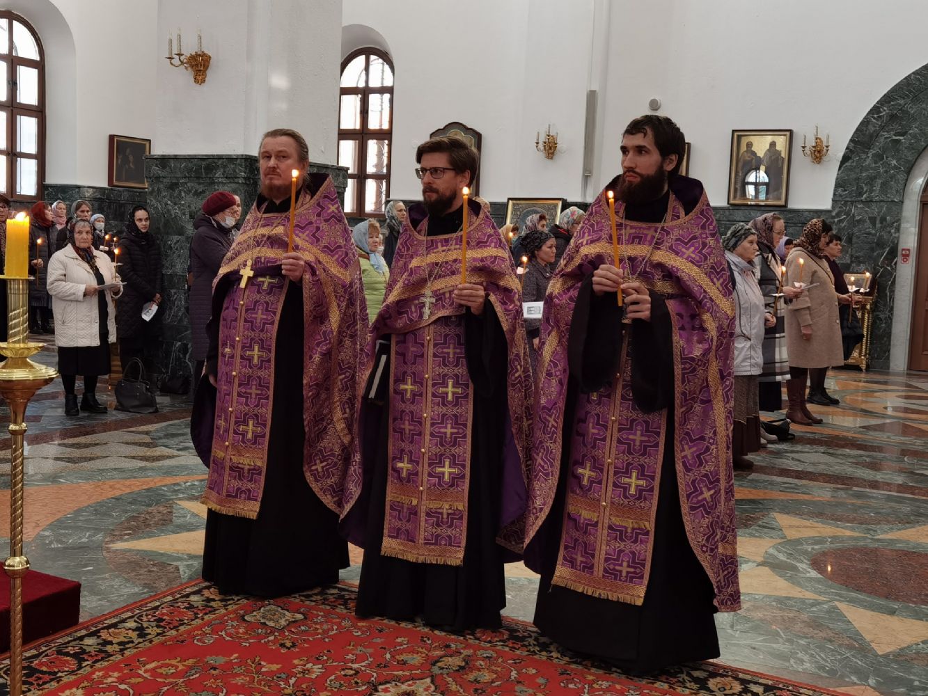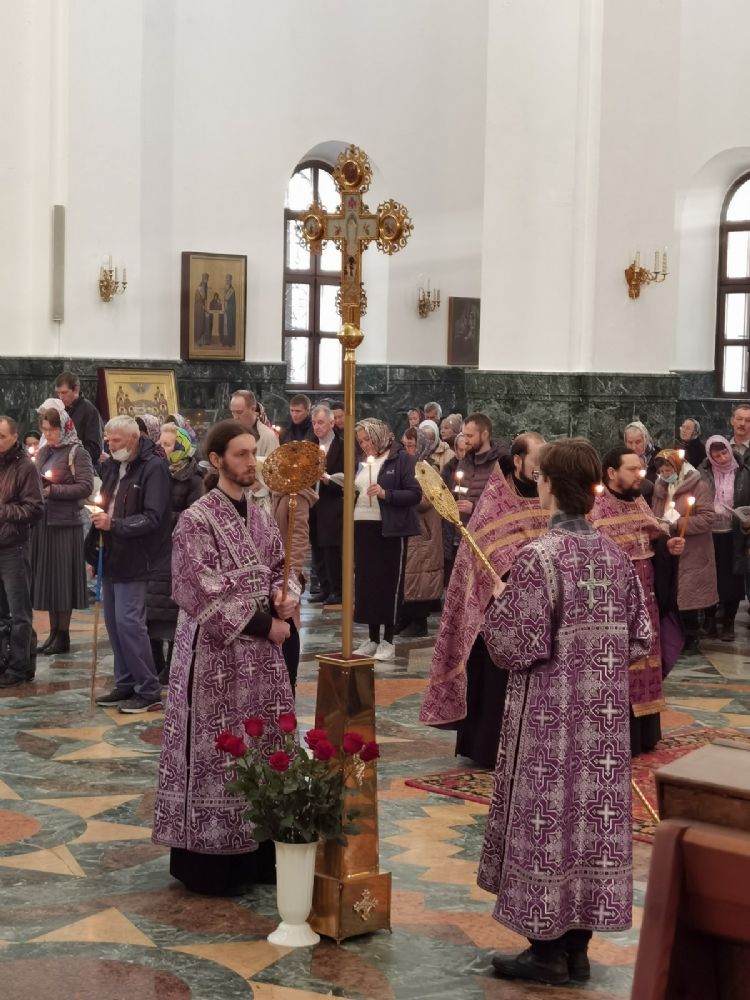 Все богослужение посвящено воспоминанию спасительных страданий и крестной смерти Господа нашего Иисуса Христа. Евангельские отрывки вместе с Владыкой поочередно читали сослужившие ему священники – секретарь Йошкар-Олинского епархиального управления иеромонах Серафим (Пасанаев), ключарь собора протоиерей Сергий Поглазов, клирики собора Никифор Захаров, Евгений Самойлов, Александр Староверов и Иоанн Милютин.