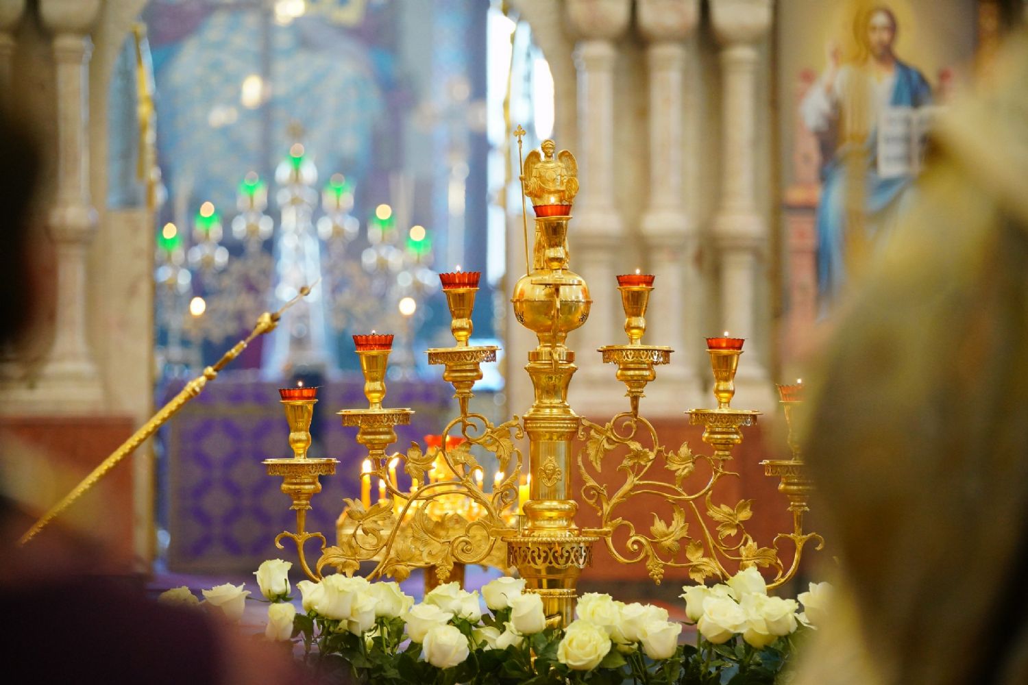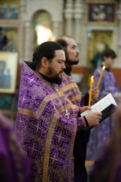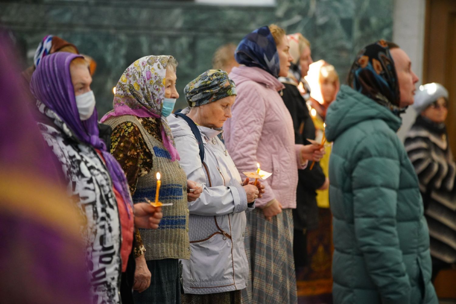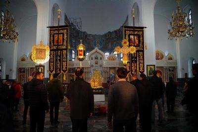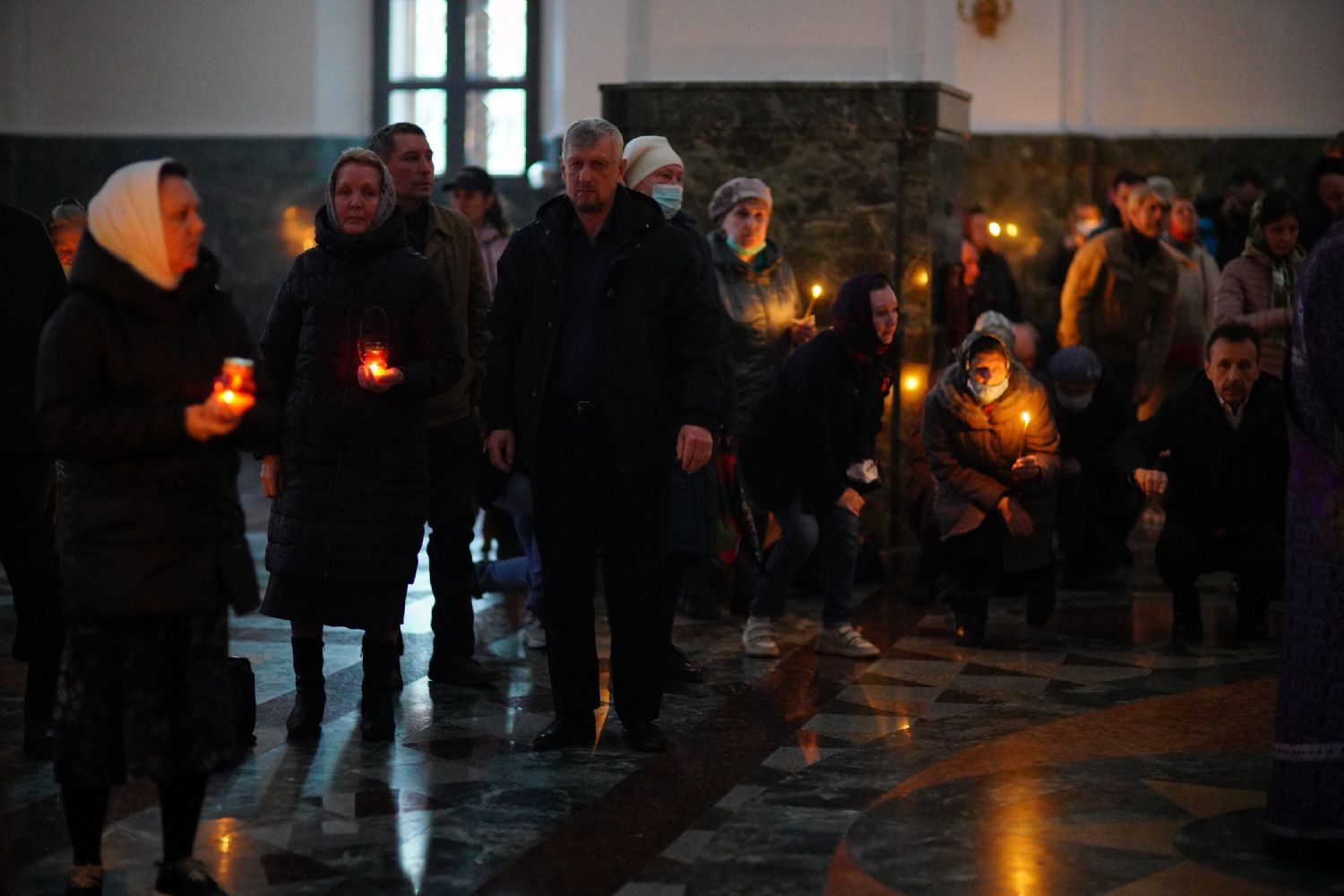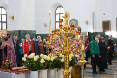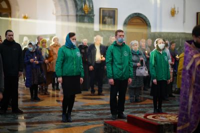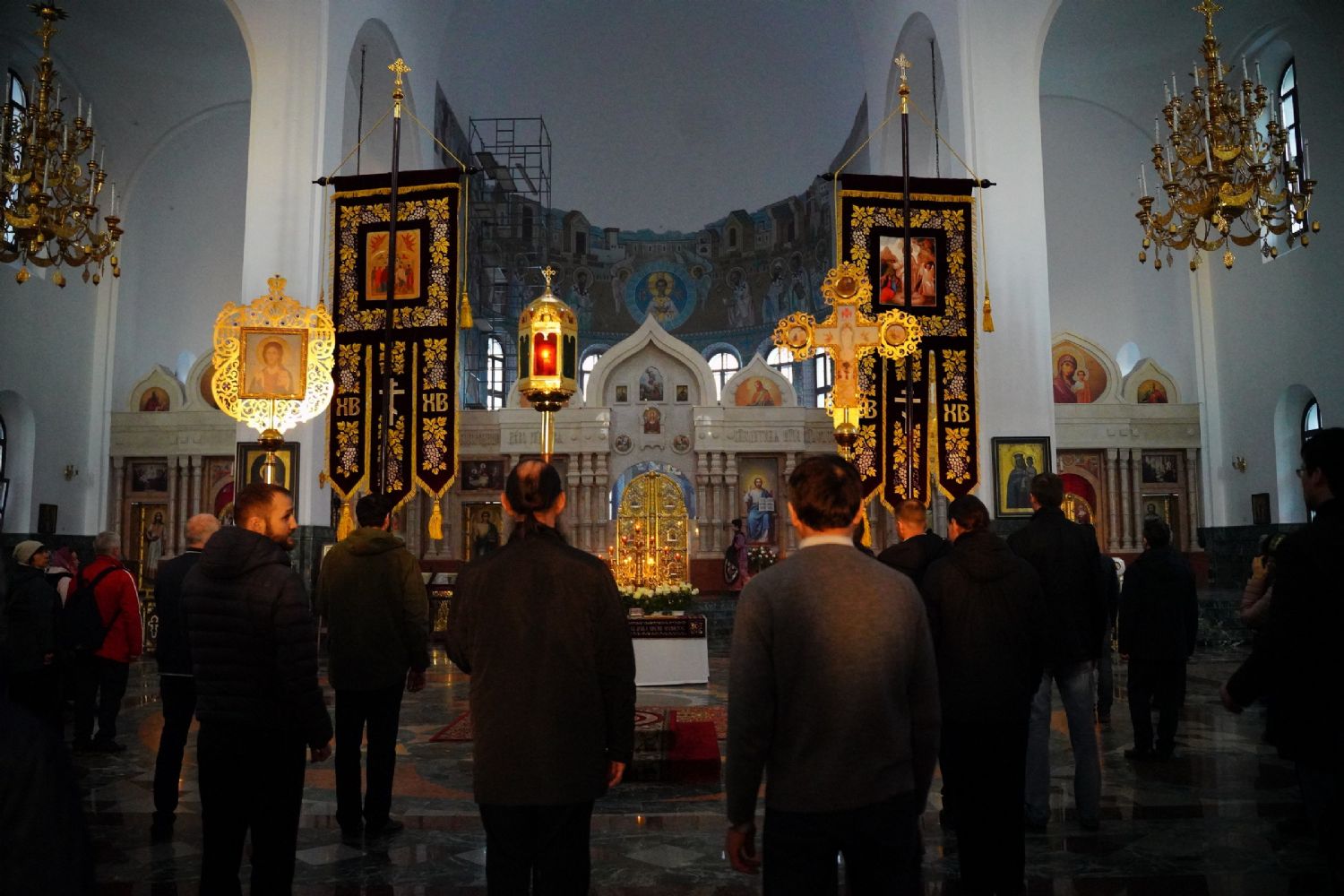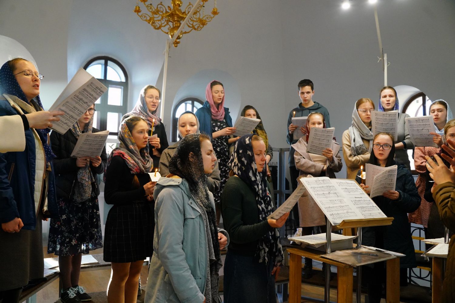 Его Высокопреосвященству сослужили ключарь кафедрального собора протоиерей Сергий Поглазов, протодиакон Михаил Козловский и клирики собора. Песнопения исполнял хор «Благовест» под руководством регента Татьяны Черновой.