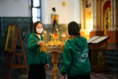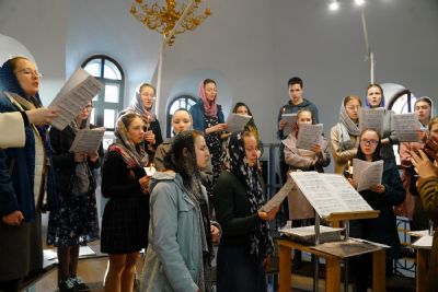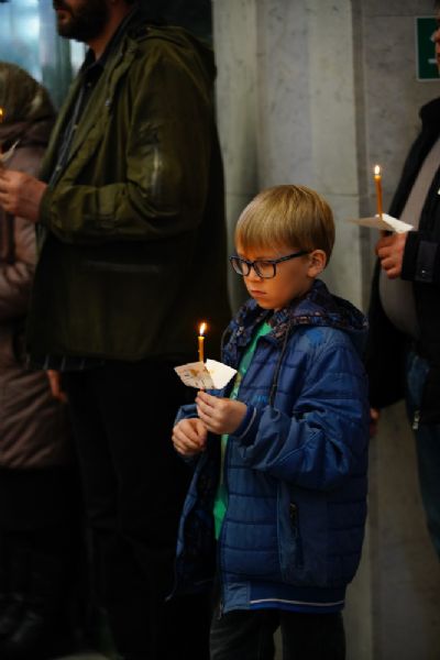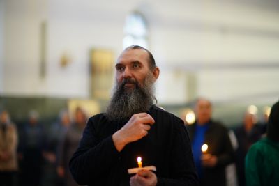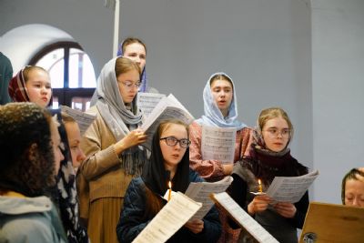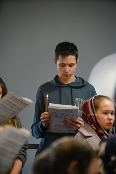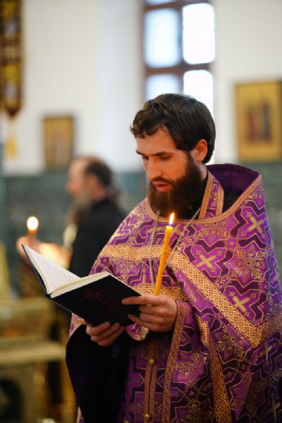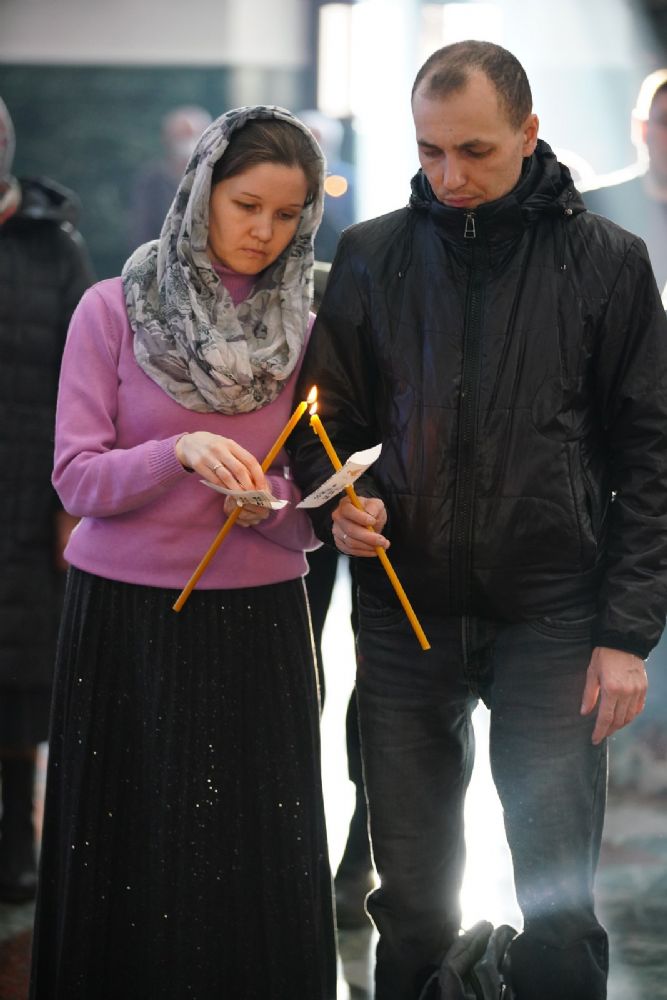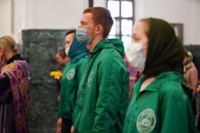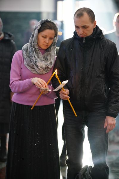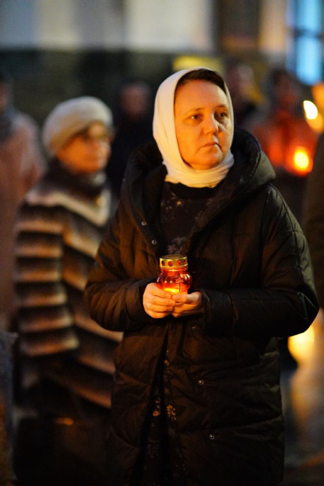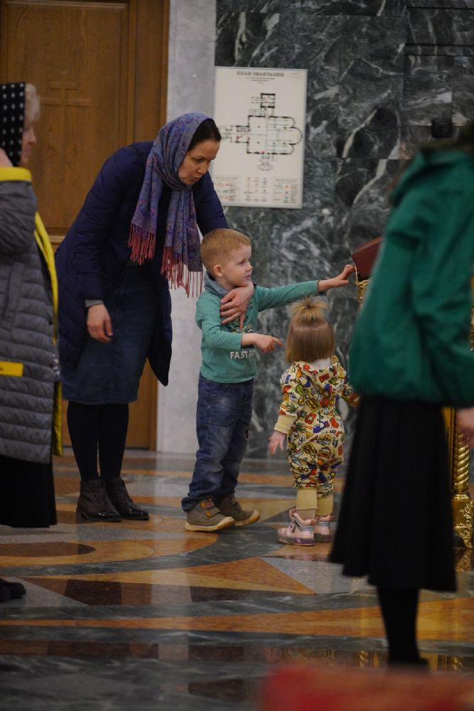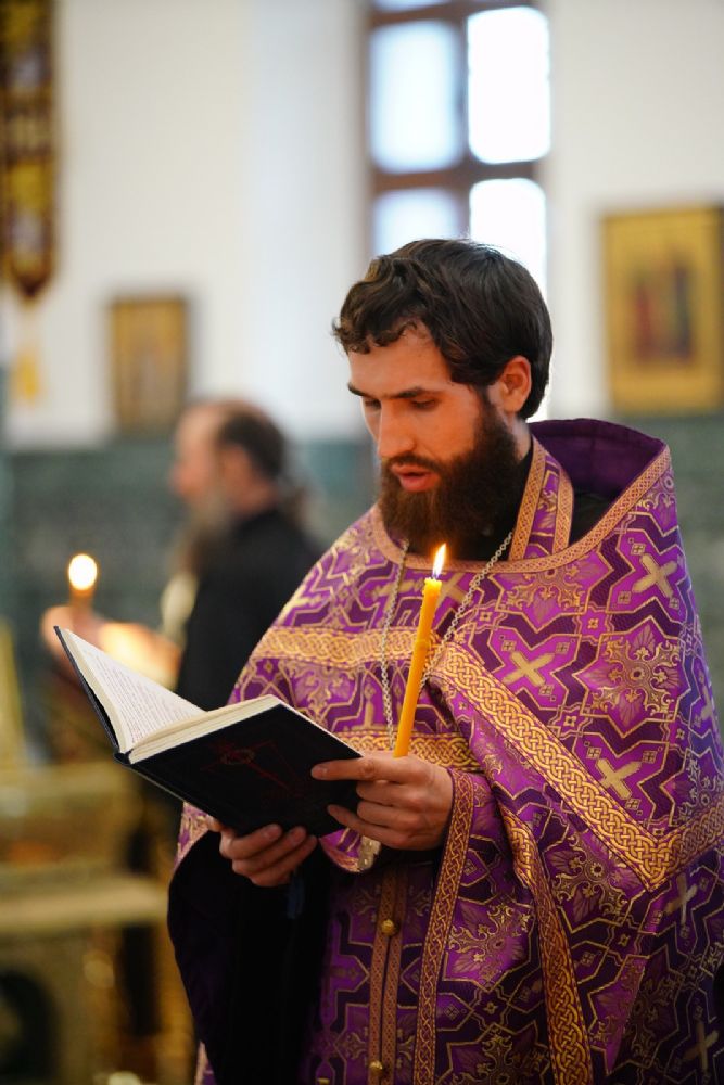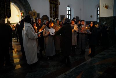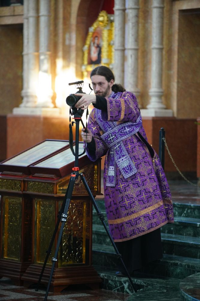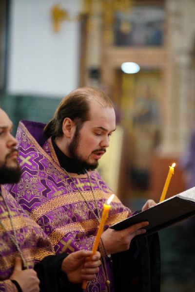 Его Высокопреосвященству сослужили ключарь кафедрального собора протоиерей Сергий Поглазов, протодиакон Михаил Козловский и клирики собора. Песнопения исполнял хор «Благовест» под руководством регента Татьяны Черновой.