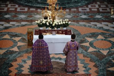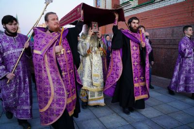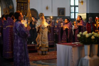 22 апреля, вечером Страстной Пятницы, митрополит Иоанн возглавил утреню Великой субботы с чином погребения Плащаницы в Благовещенском кафедральном соборе.