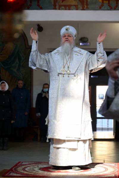 Владыке сослужили клирики собора, пел архиерейский хор.