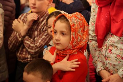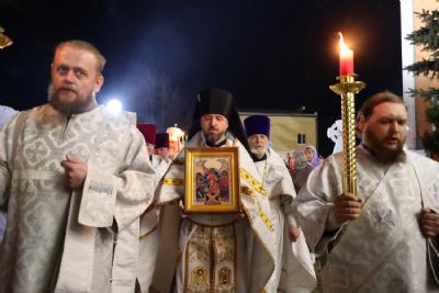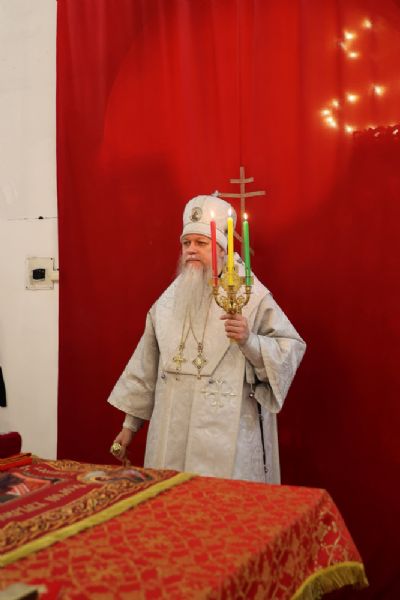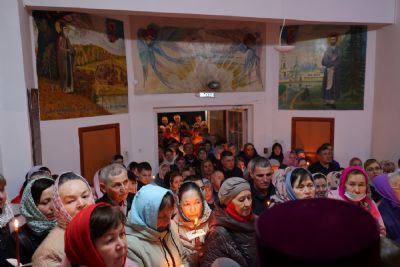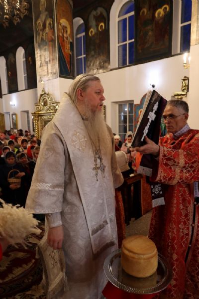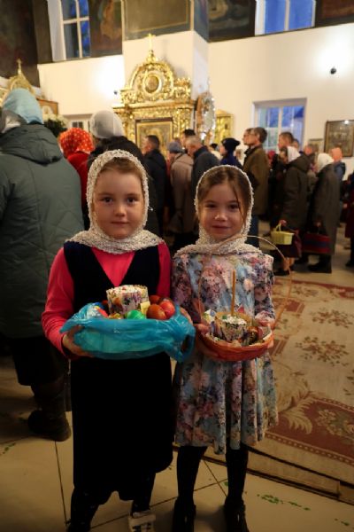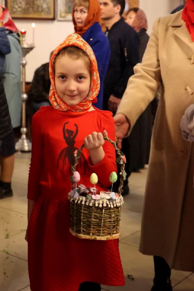 После заамвонной молитвы епископ Феофан освятил артос, а по окончании богослужения огласил Пасхальное послание Святейшего Патриарха Кирилла архипастырям, пастырям, монашествующим и всем верным чадам Русской Православной Церкви и поздравил прихожан: