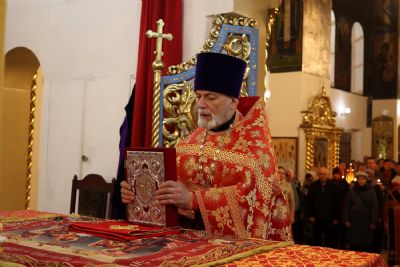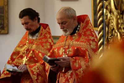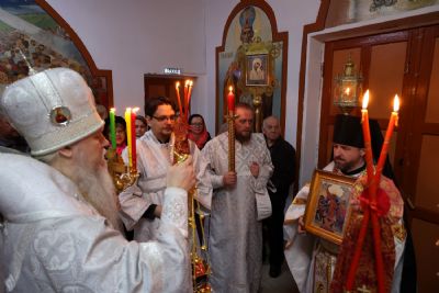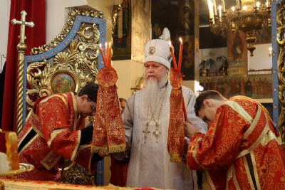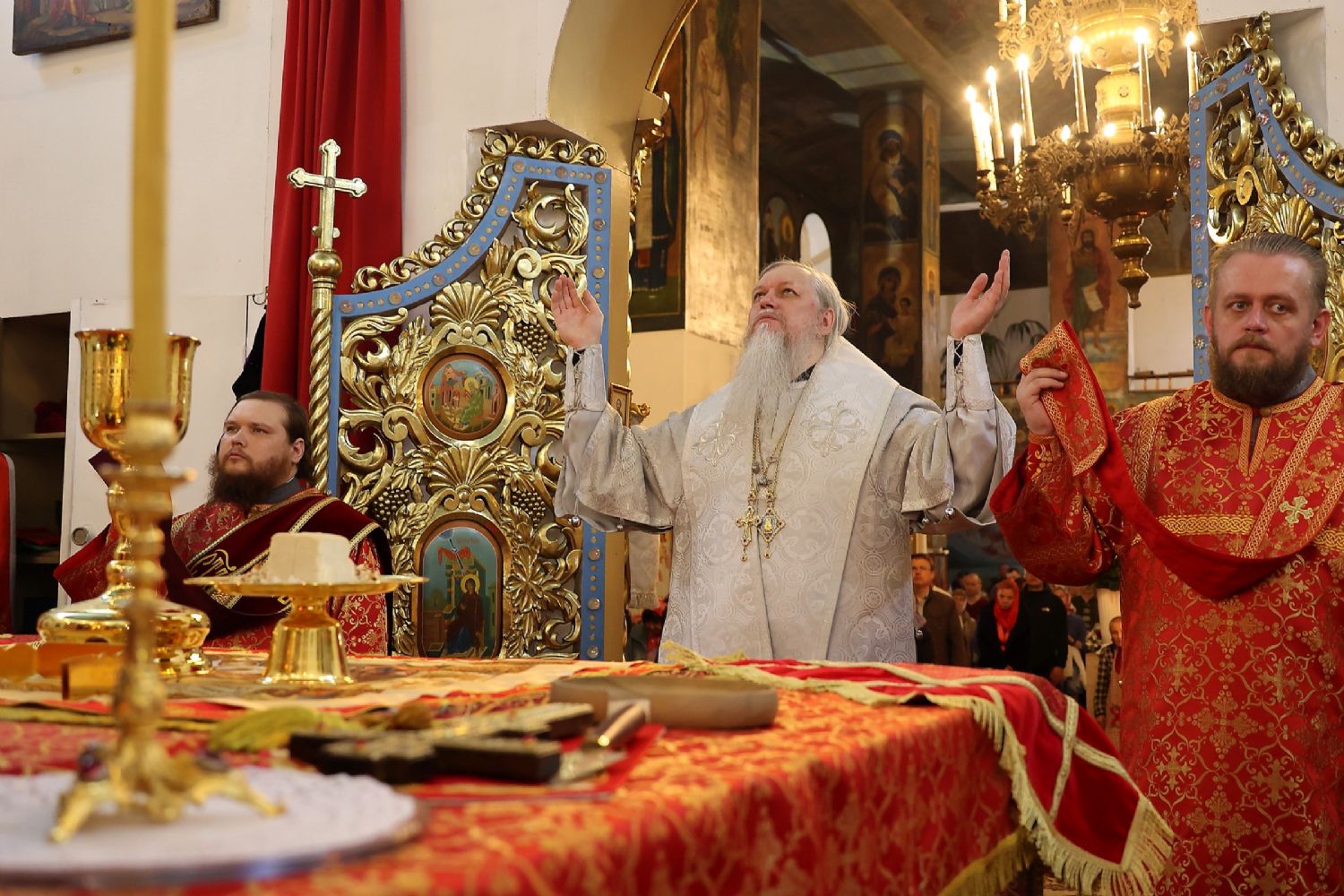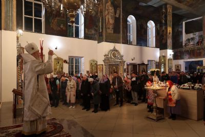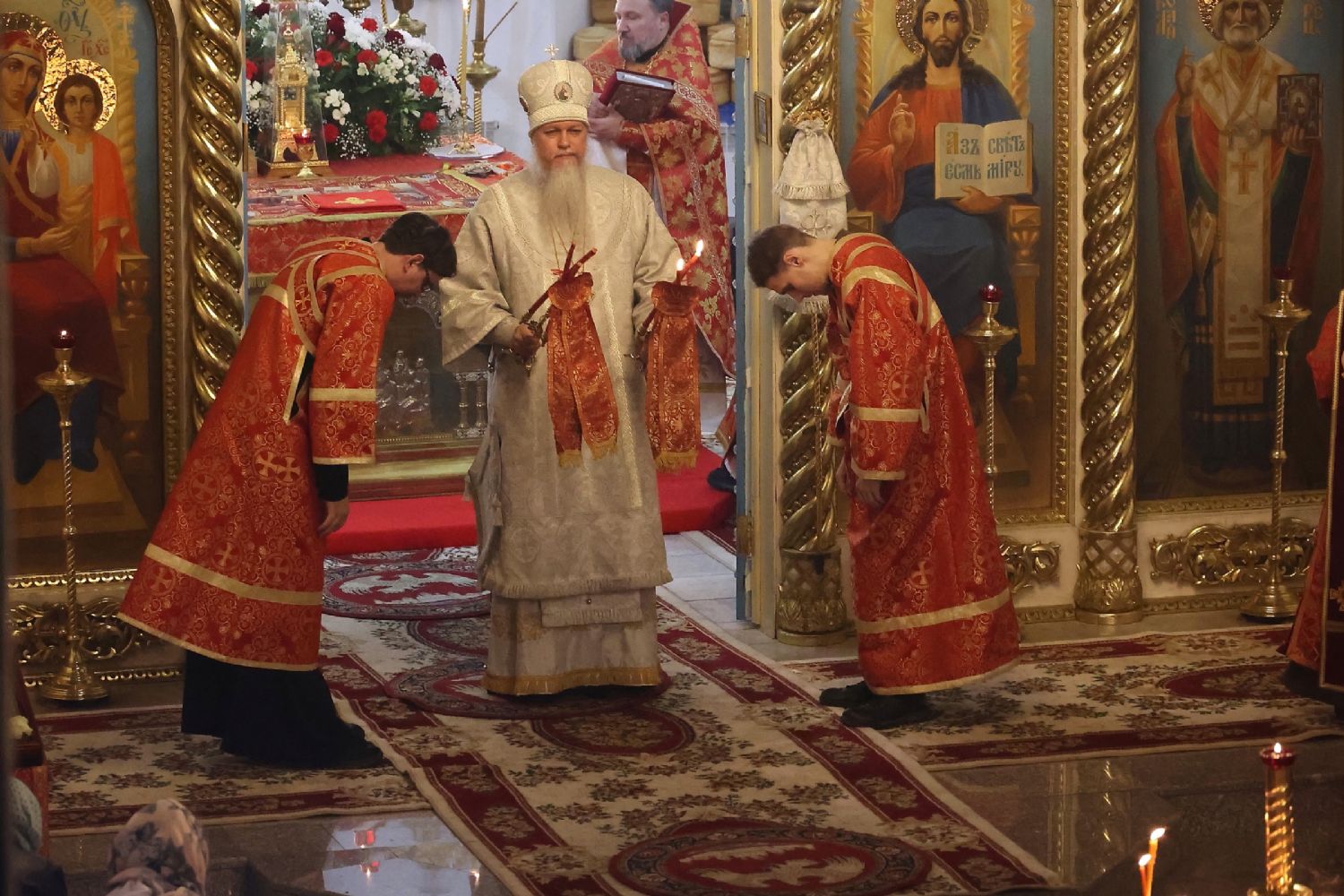 Владыке сослужили клирики собора, пел архиерейский хор под управлением Тимофея Протасова.
