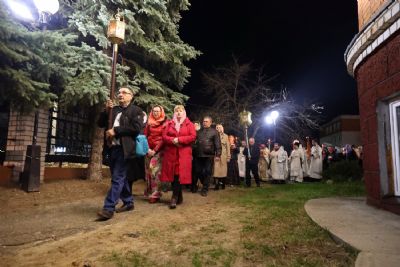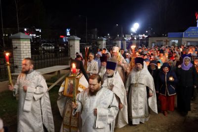 В ночь на 24 апреля епископ Волжский и Сернурский Феофан возглавил в Никольском кафедральном соборе г. Волжска пасхальные богослужения — полунощницу, крестный ход, Пасхальную заутреню и Божественную литургию.