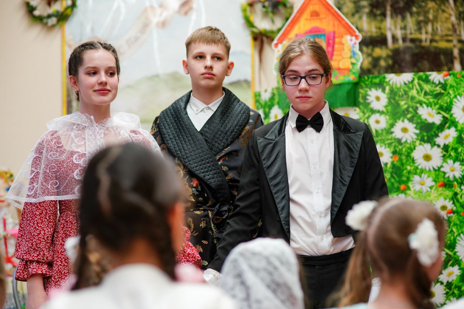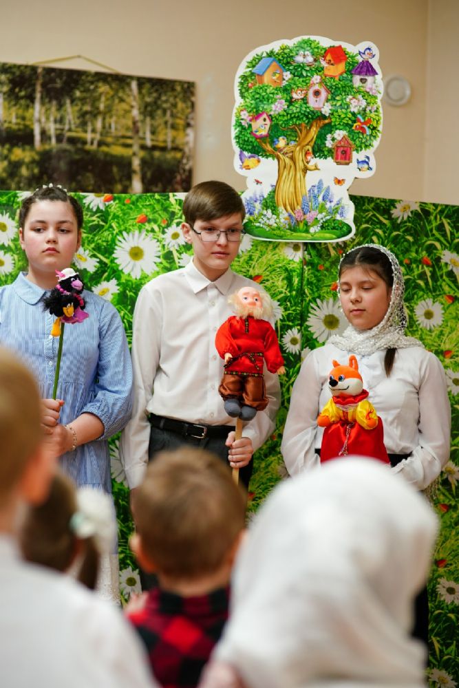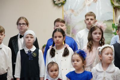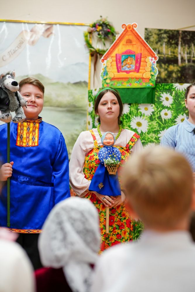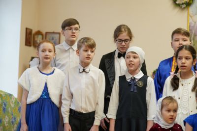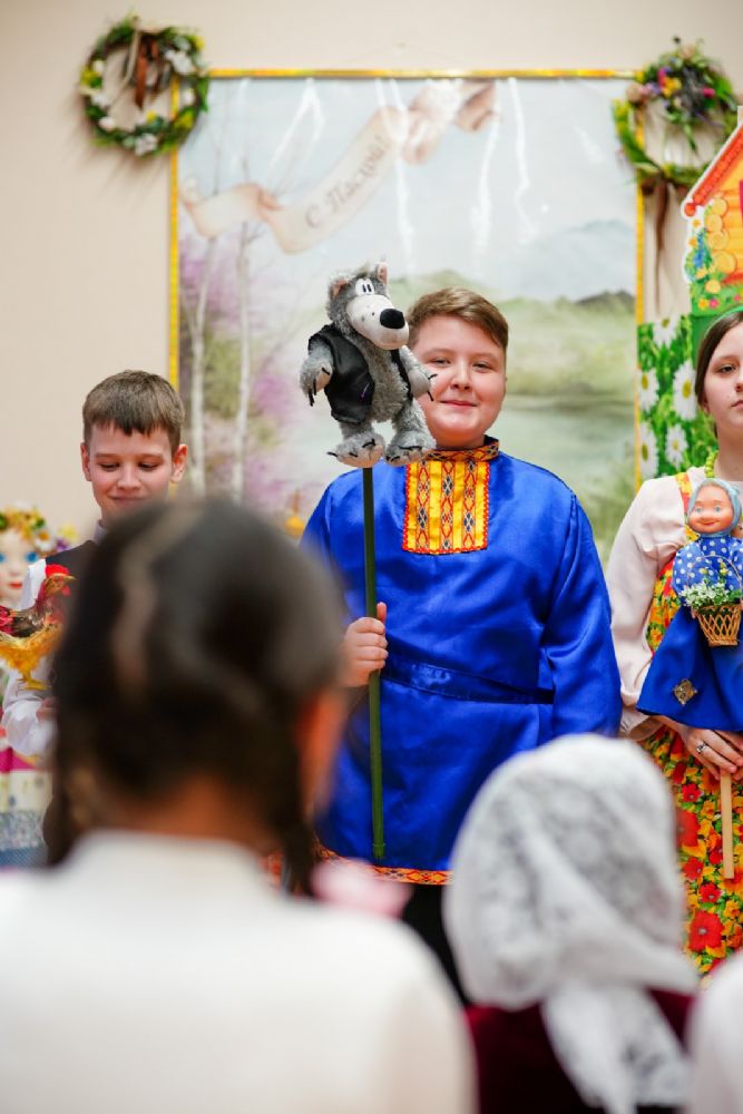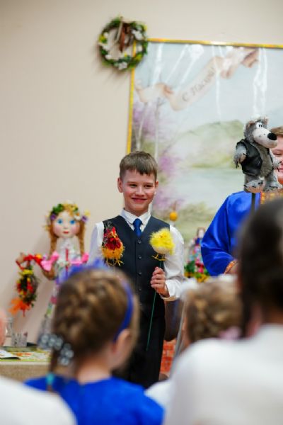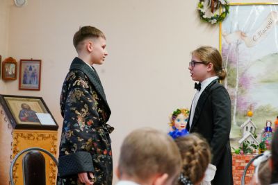 В завершение всех со светлым праздником Христова Воскресения поздравили воспитанники воскресной школы, показав праздничную концертную программу. Дети с воодушевлением читали стихи и исполняли песни, особенно порадовали зрителей спектакли - их было целых два: кукольный театр представил сказку «Золотой цыпленок», а старшие ребята показали костюмированный спектакль-шутку по пьесе Чехова «Предложение». Прямая трансляция концертной программы велась в группе «Православие в Марий Эл».