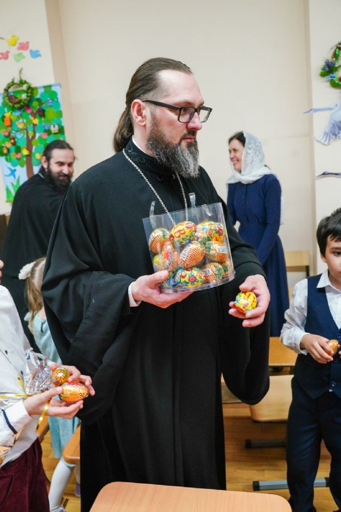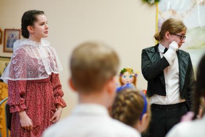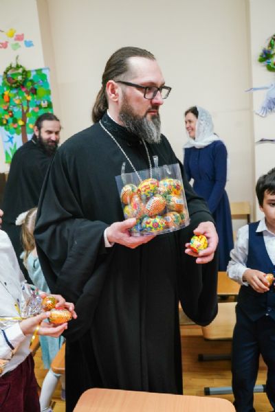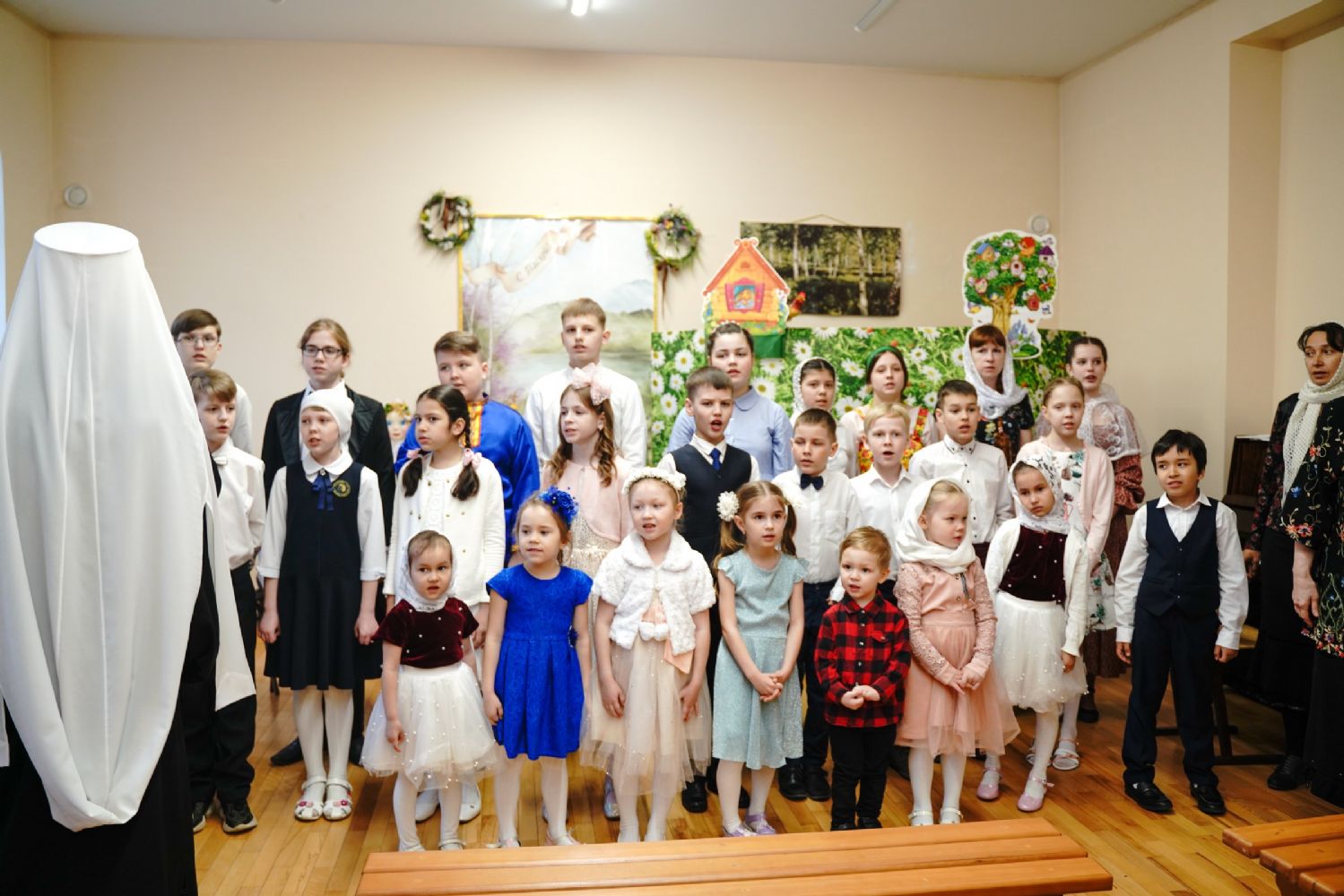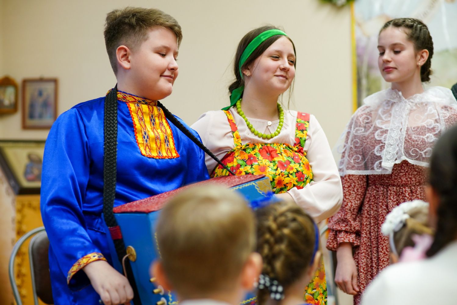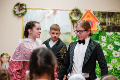 В завершение всех со светлым праздником Христова Воскресения поздравили воспитанники воскресной школы, показав праздничную концертную программу. Дети с воодушевлением читали стихи и исполняли песни, особенно порадовали зрителей спектакли - их было целых два: кукольный театр представил сказку «Золотой цыпленок», а старшие ребята показали костюмированный спектакль-шутку по пьесе Чехова «Предложение». Прямая трансляция концертной программы велась в группе «Православие в Марий Эл».