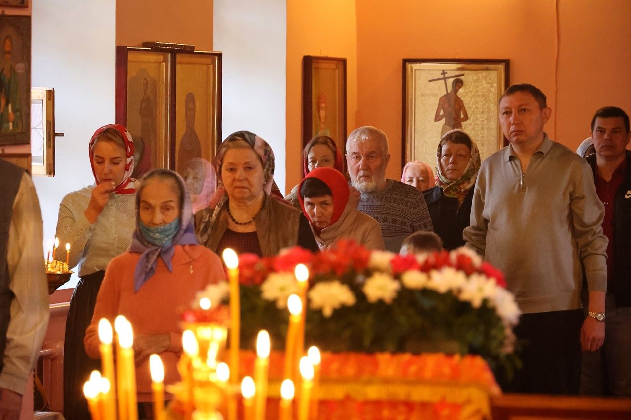 Владыке сослужили настоятель храма иеромонах Иоанн (Панин) и духовенство города Волжска, пел хор под управлением Павла Петрова.