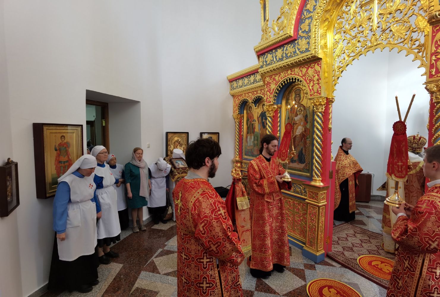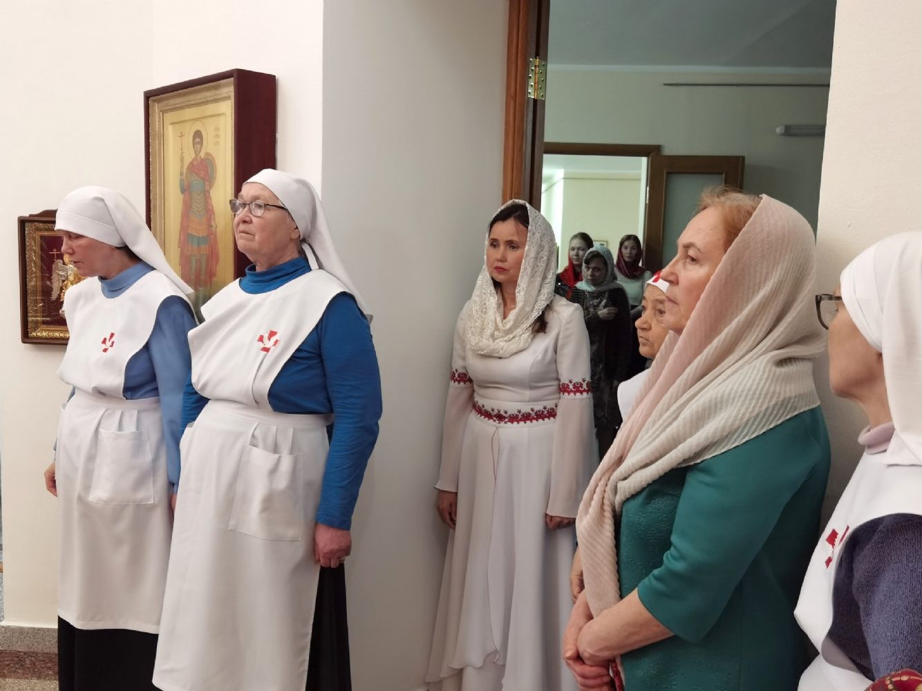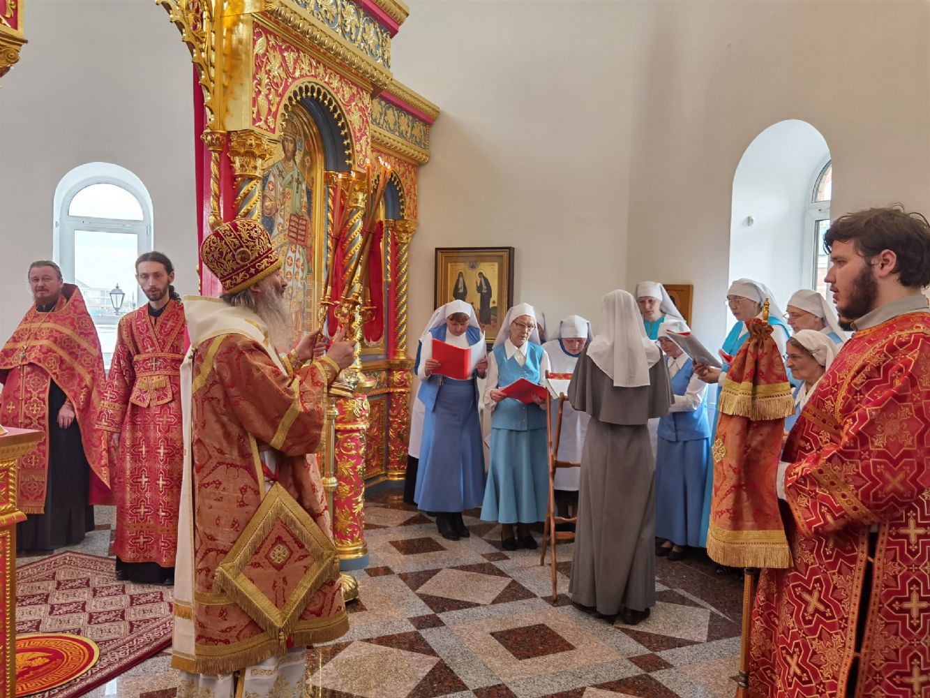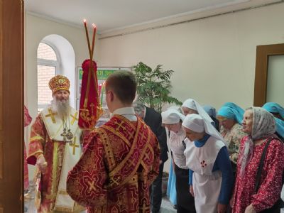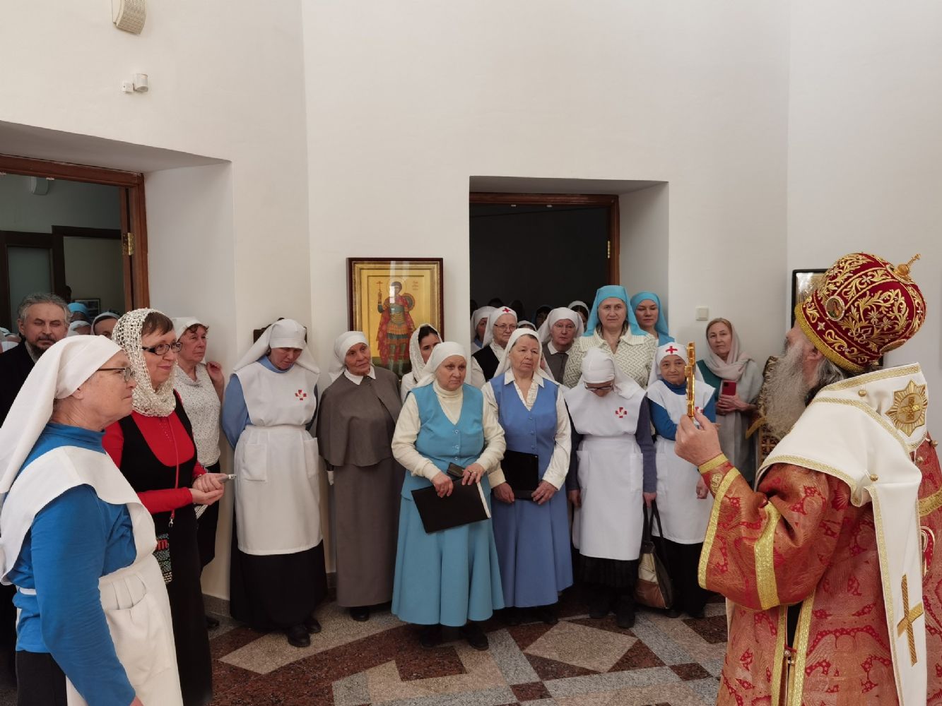 Владыке сослужили ключарь Благовещенского кафедрального собора протоиерей Сергий Поглазов, руководитель епархиального отдела социального служения и церковной благотворительности иерей Алексий Михеев и сотрудник отдела иерей Александр Староверов. Богослужебные песнопения исполнял хор сестричества под управлением Елены Яровиковой.