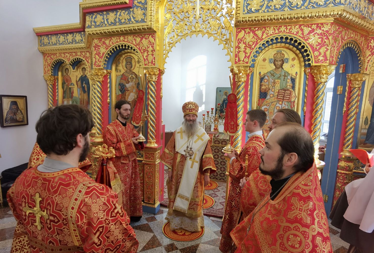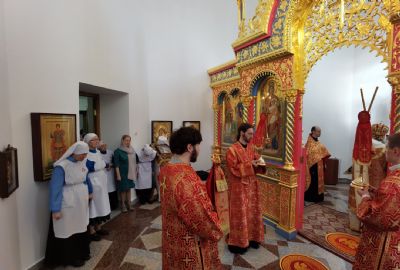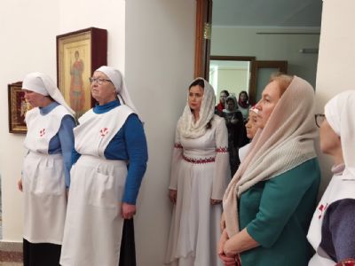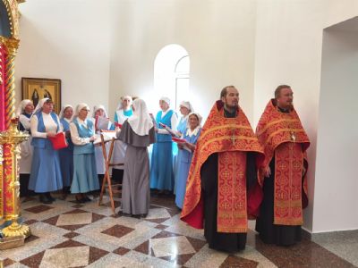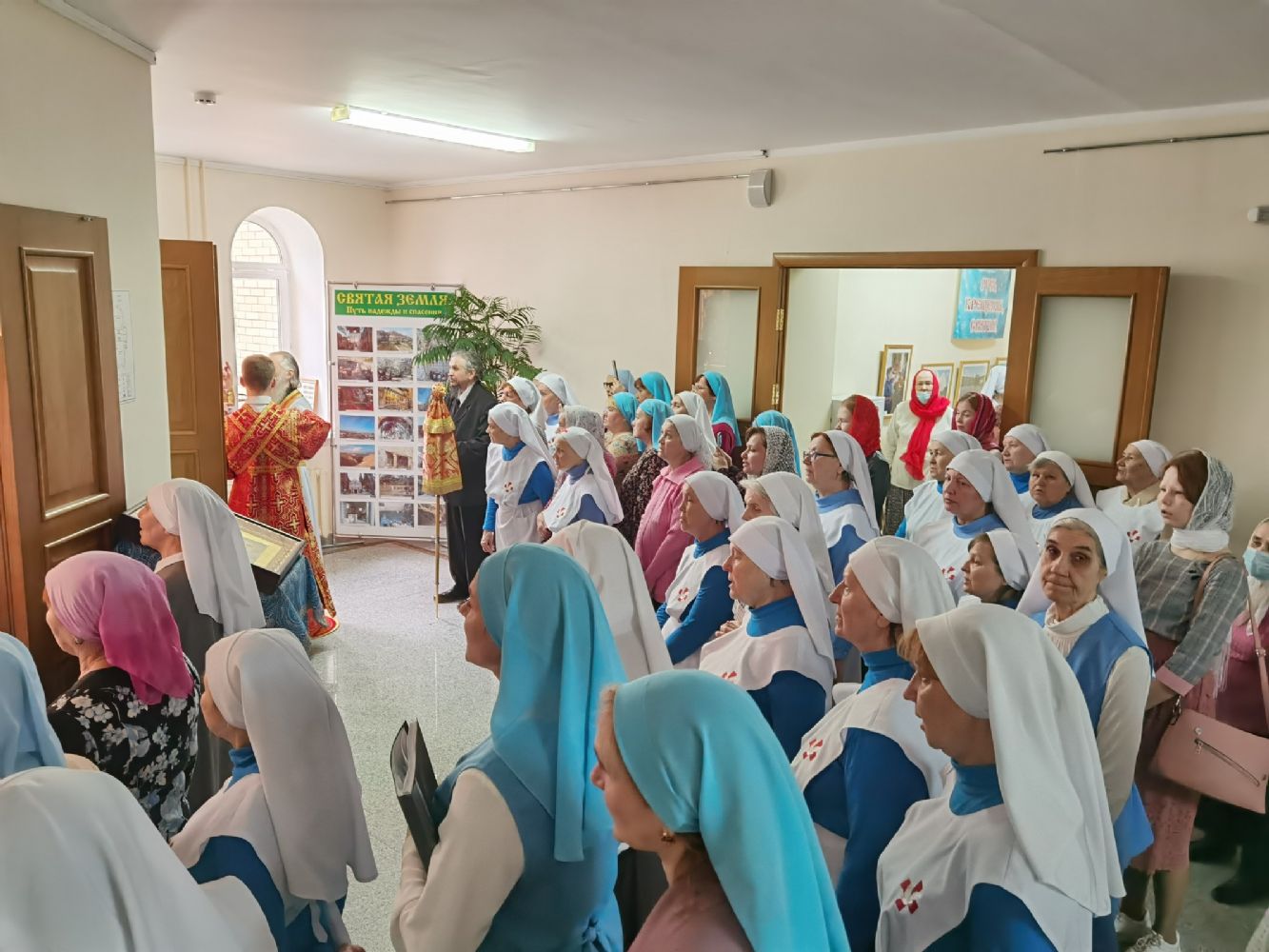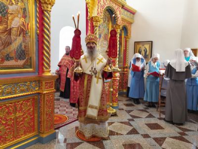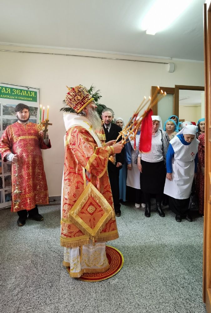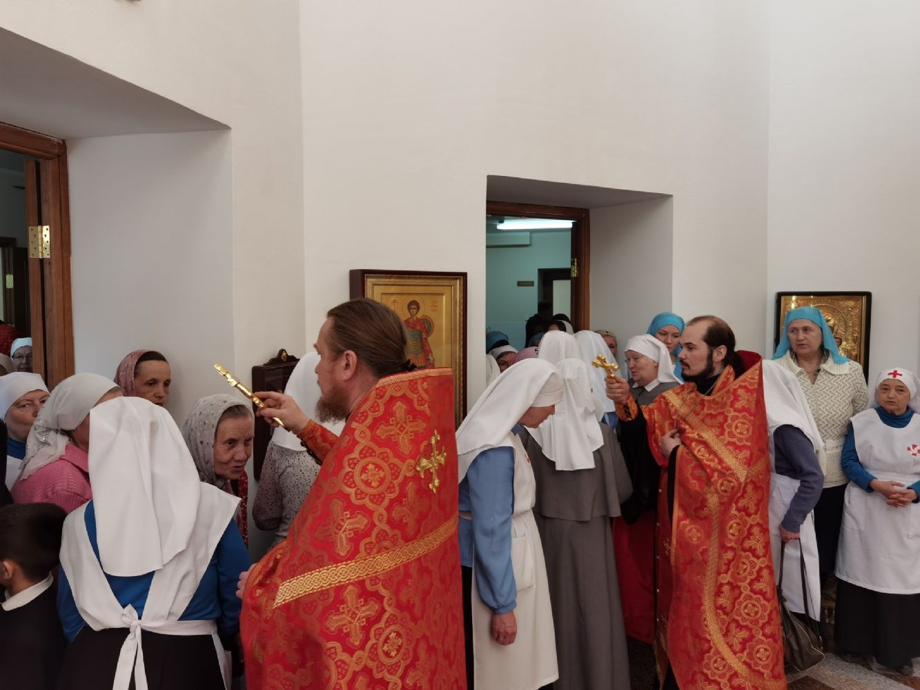 Владыке сослужили ключарь Благовещенского кафедрального собора протоиерей Сергий Поглазов, руководитель епархиального отдела социального служения и церковной благотворительности иерей Алексий Михеев и сотрудник отдела иерей Александр Староверов. Богослужебные песнопения исполнял хор сестричества под управлением Елены Яровиковой.