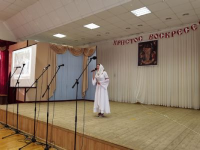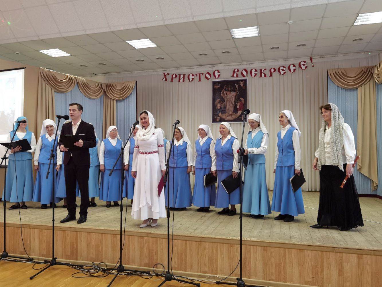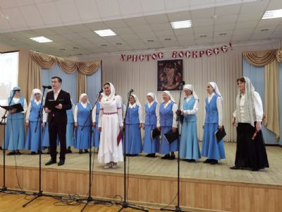 Концертная программа, которую вели актриса республиканского ТЮЗа Любовь Купсольцева и артист театра им. Шкетана Алексей Тетерин, началась с выступления хора сестричества под руководством регента Ларисы Максимовой – они исполнили песнопения из Пасхальных часов и праздничные песни.