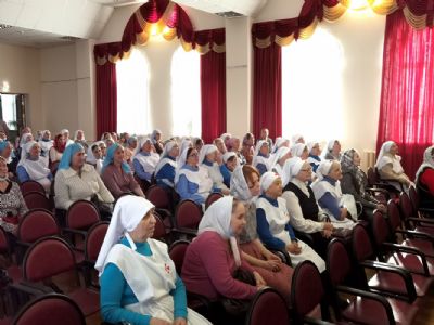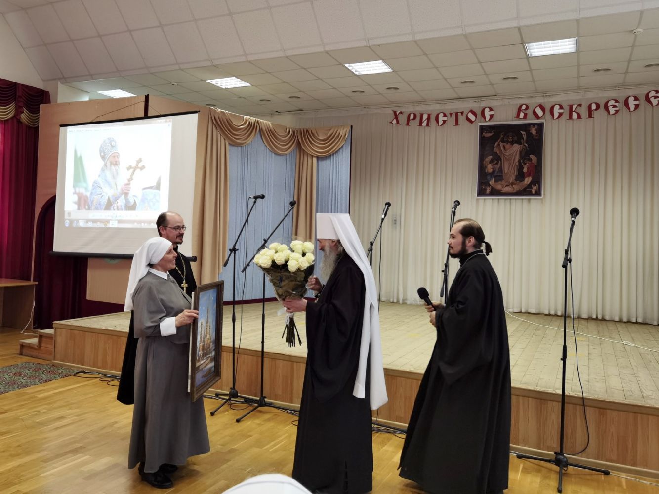 После вечерни митрополит Иоанн со священством посетил традиционный Пасхальный концерт сестер милосердия в актовом зале Православного центра.