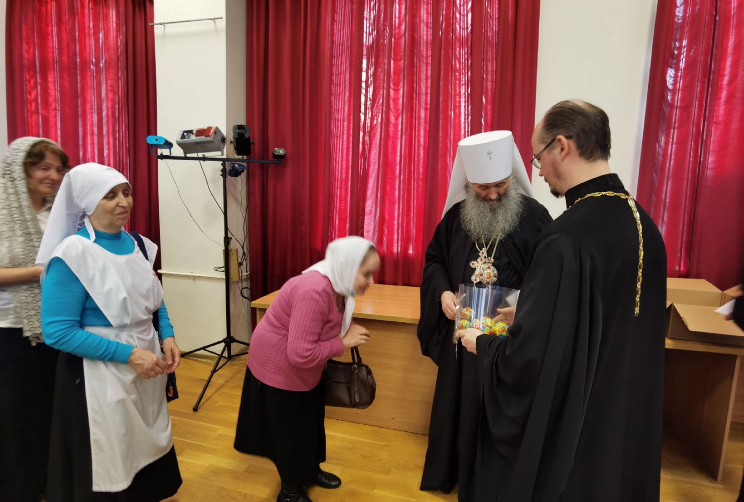 С пасхальными поздравлениями владыка вручил выступавшим и всем пришедшим на концерт сладкие подарки. В свою очередь, сестры милосердия, поздравляя архипастыря со светлым праздником, подарили ему картину с изображением Благовещенского кафедрального собора.