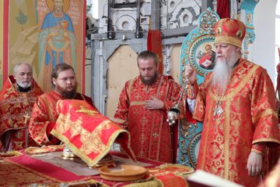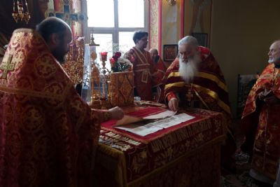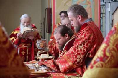 Владыке сослужили настоятель храма протоиерей Владимир Власов и клирики Северного, Восточного и Волжского церковных округов епархии. Песнопения исполнял хор храма.