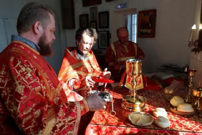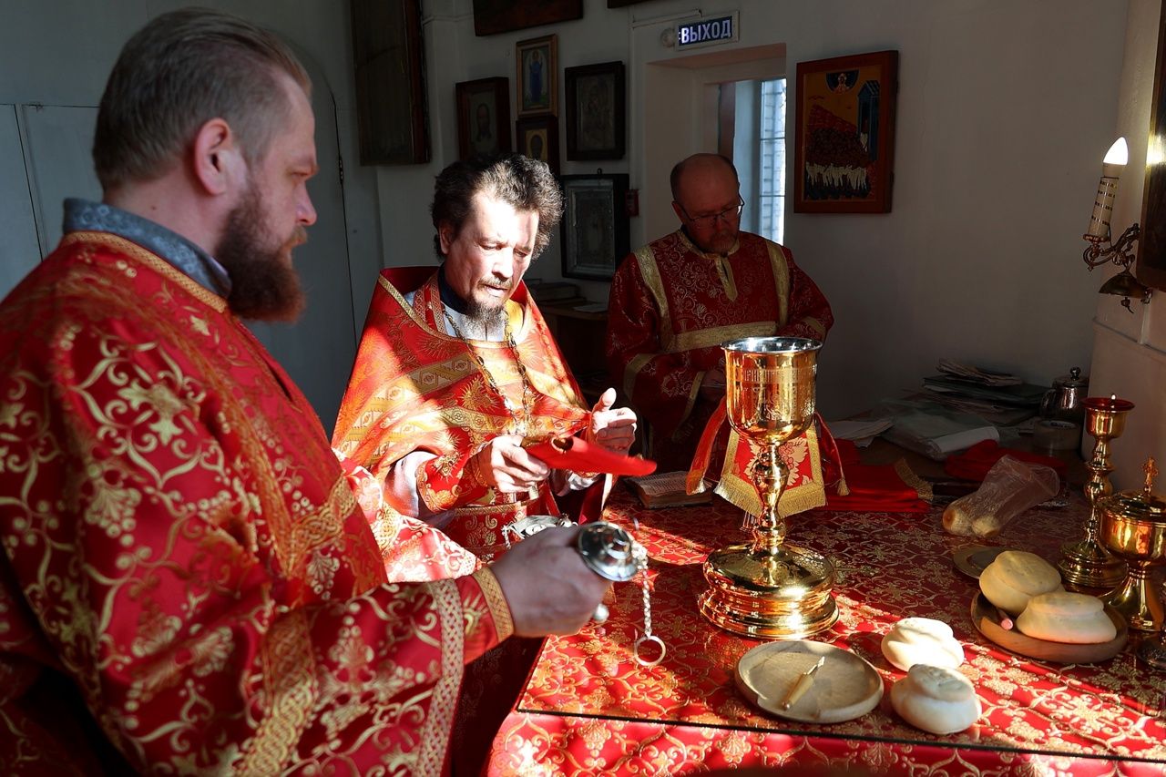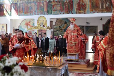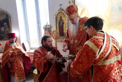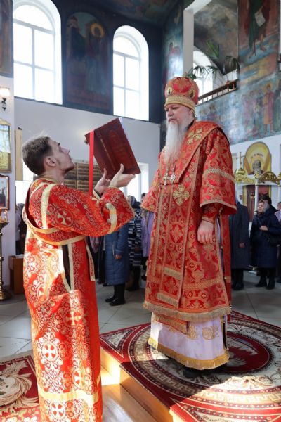 Его Преосвященству сослужили секретарь епархиального управления иерей Иоанн Лапшинский, клирики Никольского собора иерей Александр Усков, диакон Иоанн Захаров, диакон Димитрий Карпетченко. Песнопения исполнял архиерейский хор под управлением Тимофея Протасова.
