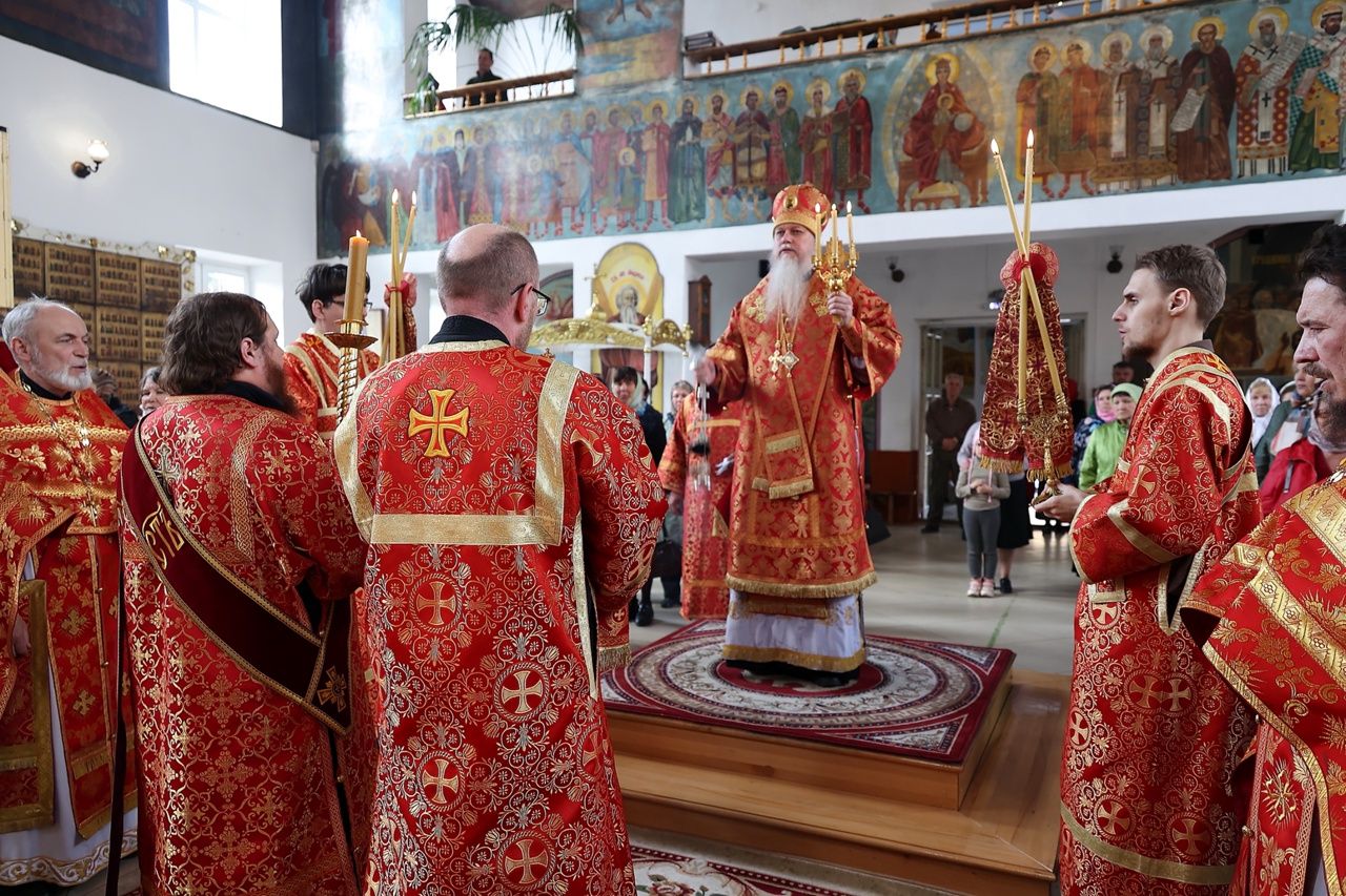 По завершении Литургии епископ Феофан возглавил панихиду, которая совершается в Радоницу впервые после Светлого Христова Воскресения и включает в себя в том числе и пасхальные песнопения.