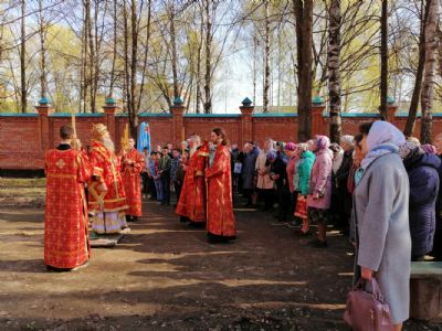 Вечером 8 мая митрополит Йошкар-Олинский и Марийский Иоанн возглавил вечерню с пением акафиста Воскресению Христову на территории строящегося в микрорайоне Тарханово храма в честь иконы Божией Матери «Всех скорбящих Радость».