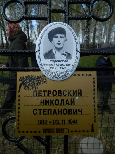 Николай Петровский родился в с. Сумки в 1917 году. В начале войны он был призван на фронт, где в составе 250-го мотострелкового полка защищал подступы к Москве. Полк удерживал рубеж западнее поселка Кубинка в 63 километрах от Москвы, проходивший через деревни Полушкино, Крутицы, Ляхово. Из исторической справки известно, что в ночь на 3 ноября 1941 года бойцы нашей армии готовились к отражению наступлений противника: пехотинцы рыли окопы, ставили мины, танкисты сооружали капониры для защиты машины от осколков… С рассветом немецкая армия накрыла наших бойцов мощным артналетом с бомбардировками, в атаку двинулись танки и пехота противника. В этих страшных боях полегло много наших бойцов, сражаясь до последней капли крови. Среди них был и командир отделения ефрейтор Николай Петровский.