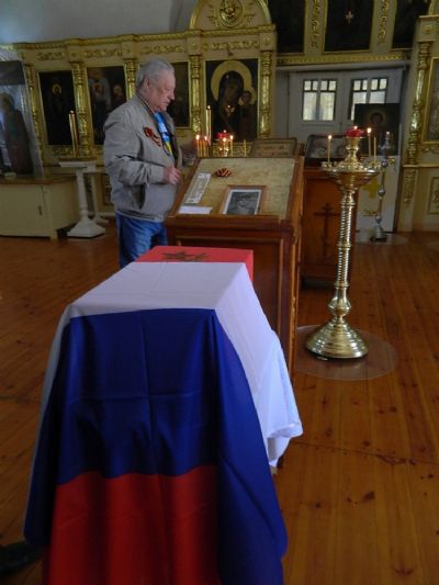 Останки бойца обнаружила поисковая группа Кубинского военно-исторического клуба «Вечный огонь», опознан он был по солдатскому медальону. Прах доставили в Марий Эл, где его встретил настоятель храма Владимирской иконы Божией Матери с. Владимирское Горномарийского района иерей Алексий Васюткин.