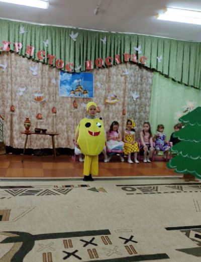 С целью ознакомления детей с традициями празднования Пасхи на Руси в подготовительной группе «Лакомки» был проведен фольклорный праздник. Дети пели песни, читали стихи, отгадывали загадки. В сценарий праздника были умело вплетены музыкальные номера и традиции русского народа, связанные с праздником Светлой Пасхи – народная музыка, православные песни, народные танцы и хороводы, народные пасхальные игры. В программу утренника были включены и элементы театральной деятельности: инсценирована сказка «Путешествие Колобка». Дети были очень рады поучаствовать в таком ярком празднике.
