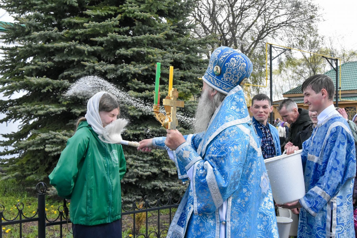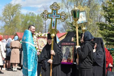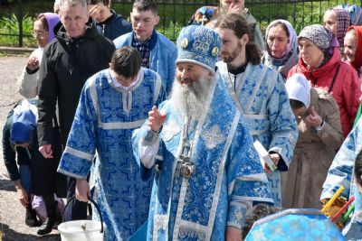 После Литургии был совершен чин малого освящения воды в часовне святого Иоанна Предтечи на территории обители с пасхальными особенностями и крестным ходом. Затем владыка Иоанн обратился к собравшимся с проповедью о важности молитв к Пресвятой Богородице, избравшей Святую Русь Себе в удел, явив множество чудотворных Своих образов.