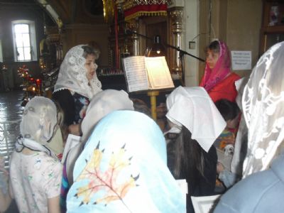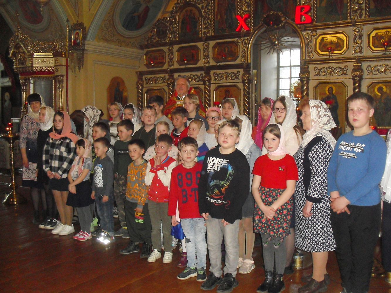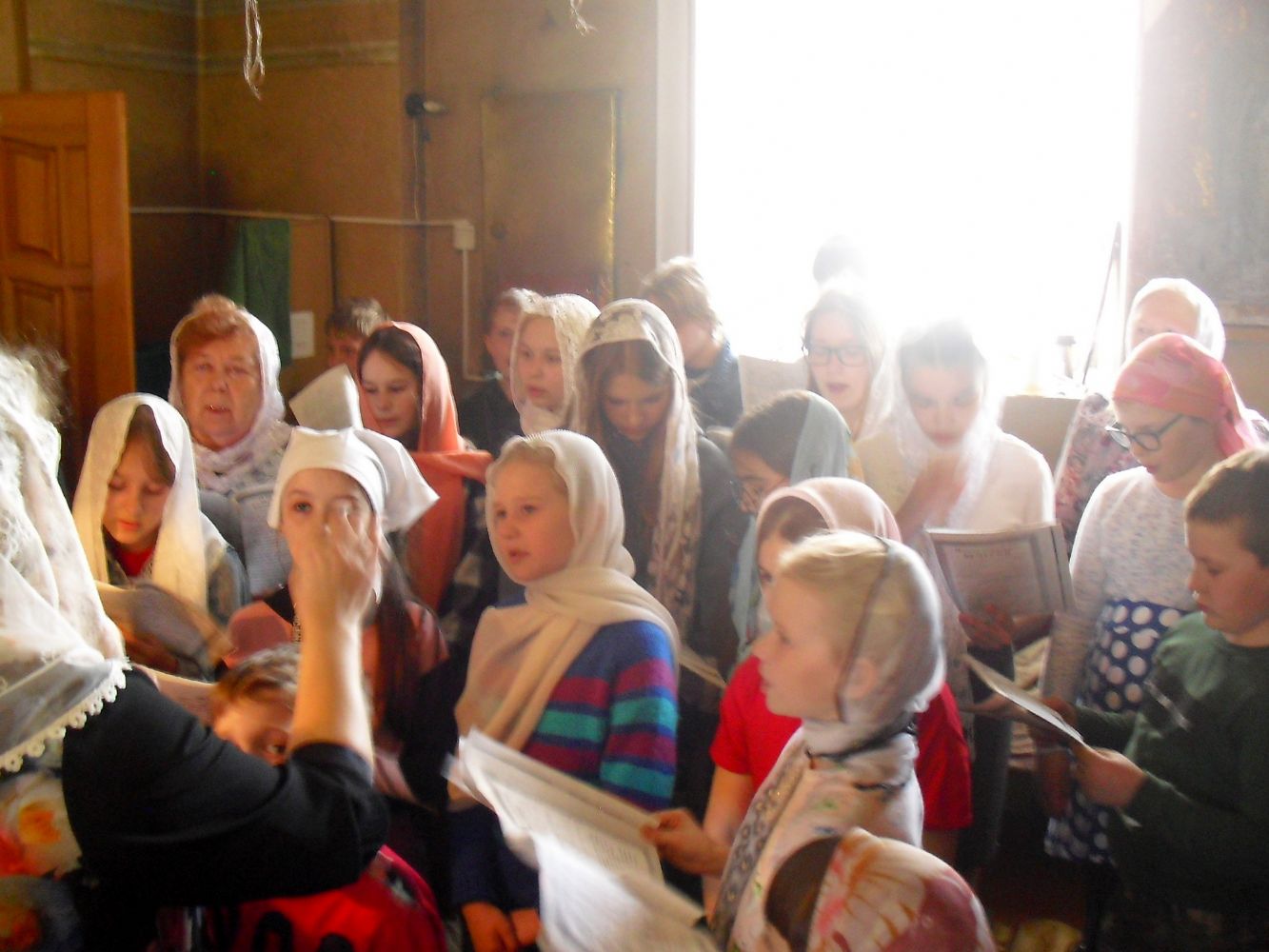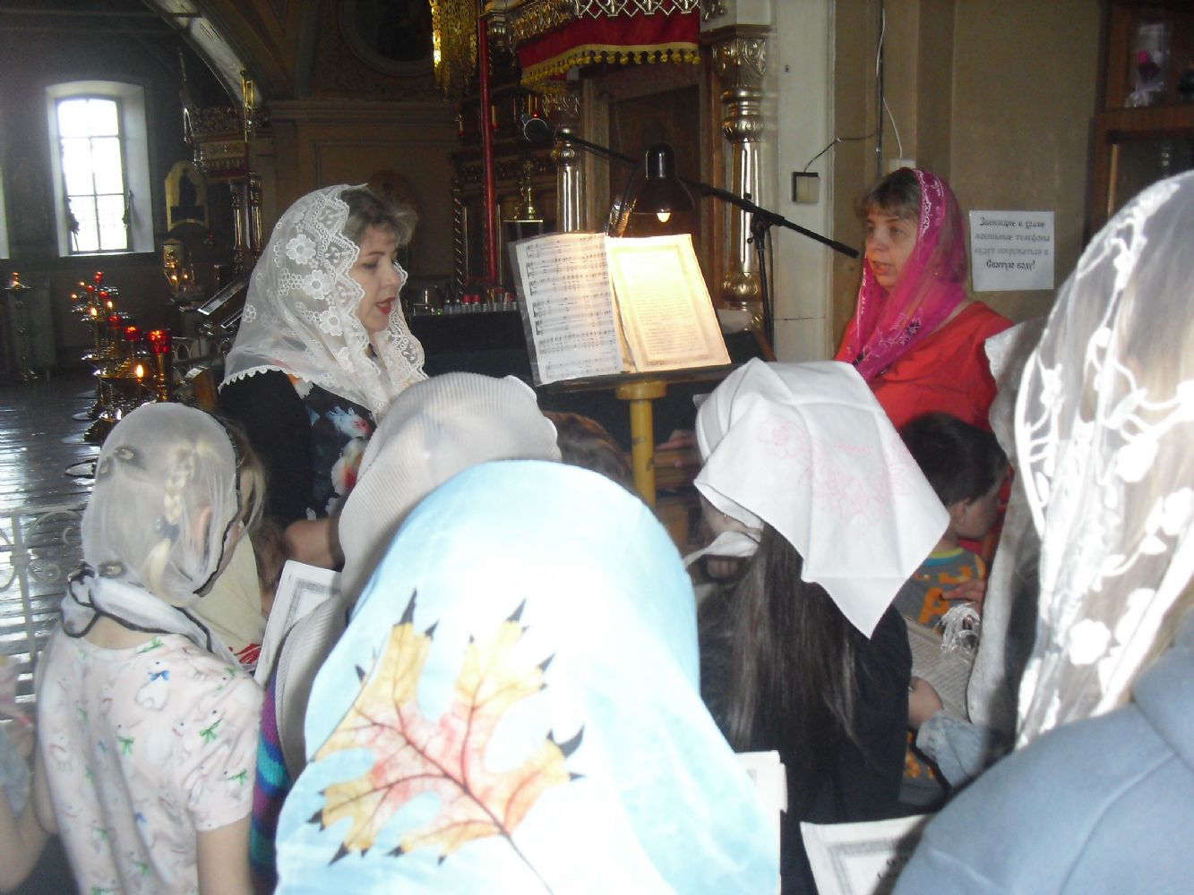 Задолго до светлого праздника Воскресения Христова дети под руководством регента храма матушки Марины Барсуковой старательно разучивали молитвы, тропарь и кондак Пасхи. Родители, присутствующие на богослужении, радостно слушали своих детей и молились вместе с ними.