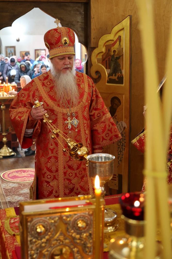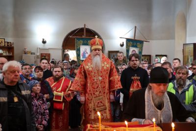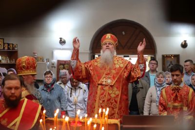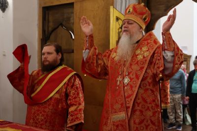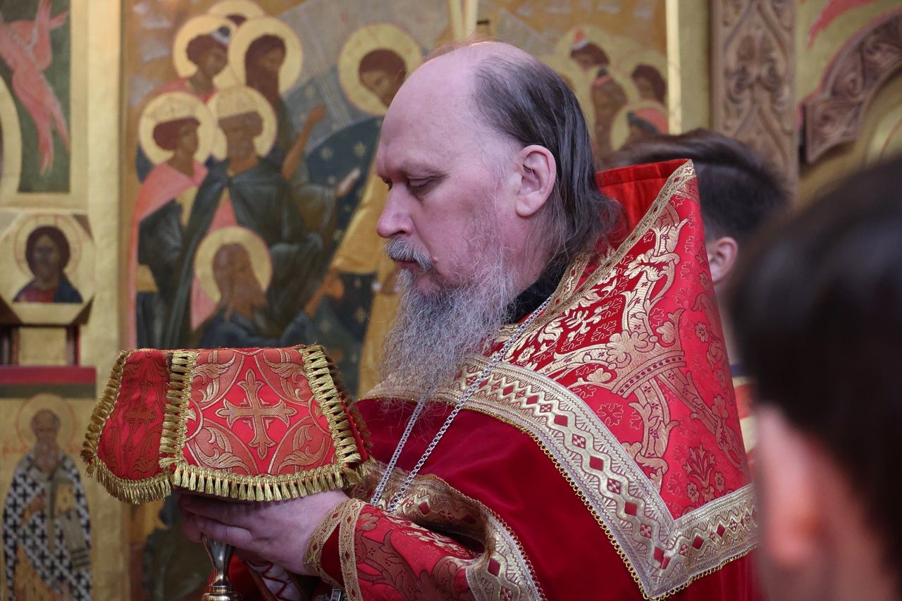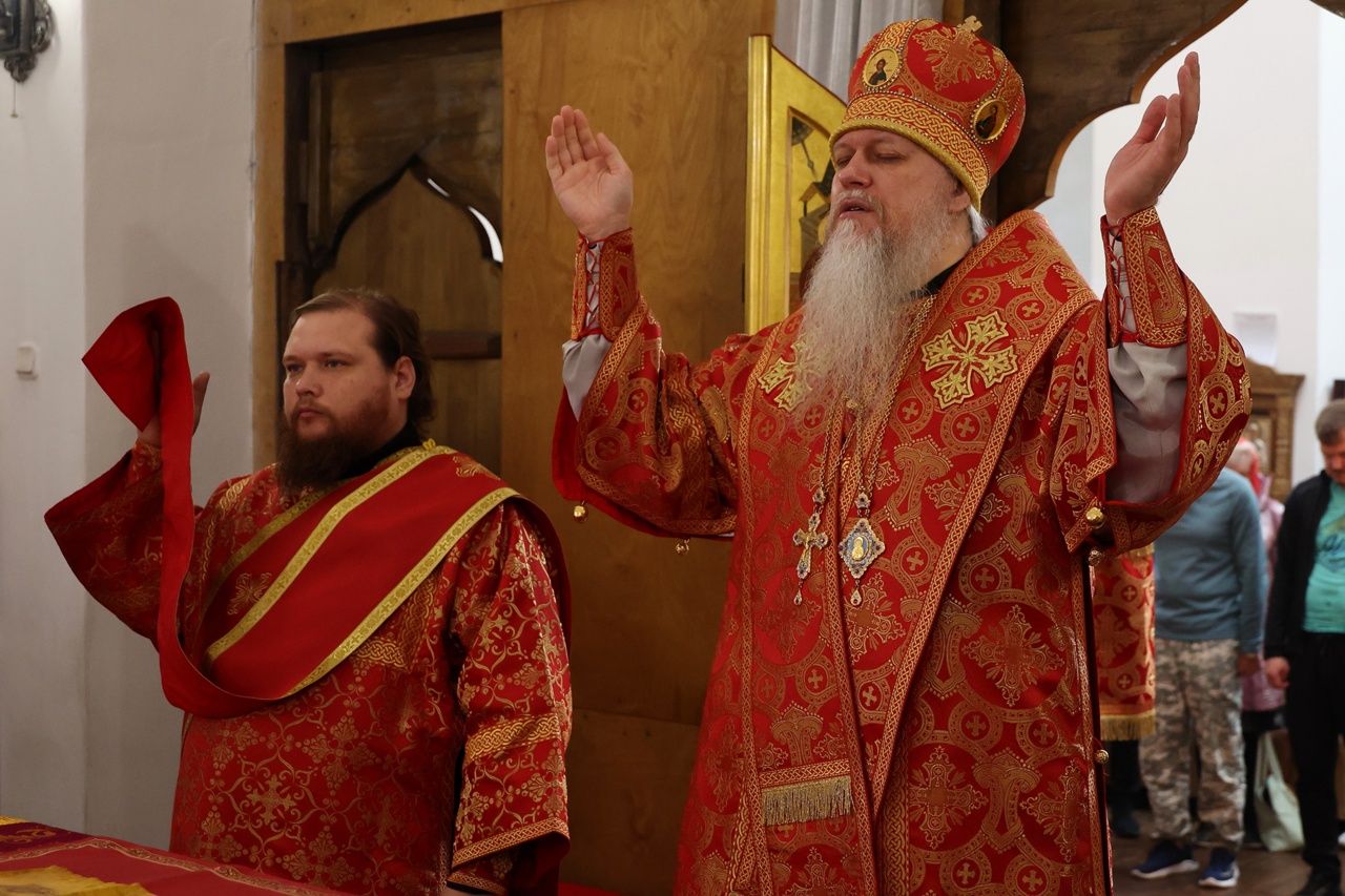 Его Преосвященству сослужили настоятель храма иконы Божией Матери «Всех скорбящих Радость» протоиерей Александр Михайлов и диакон Иоанн Захаров. Песнопения исполнял хор храма под управлением Ирины Канашиной.
