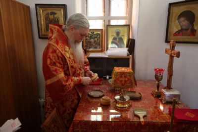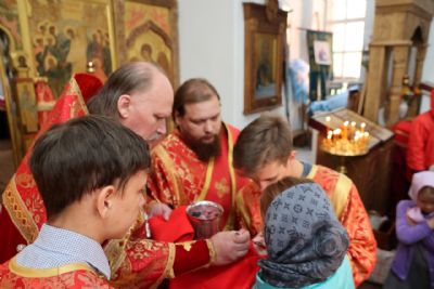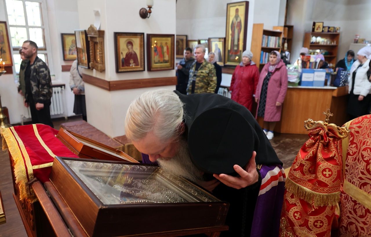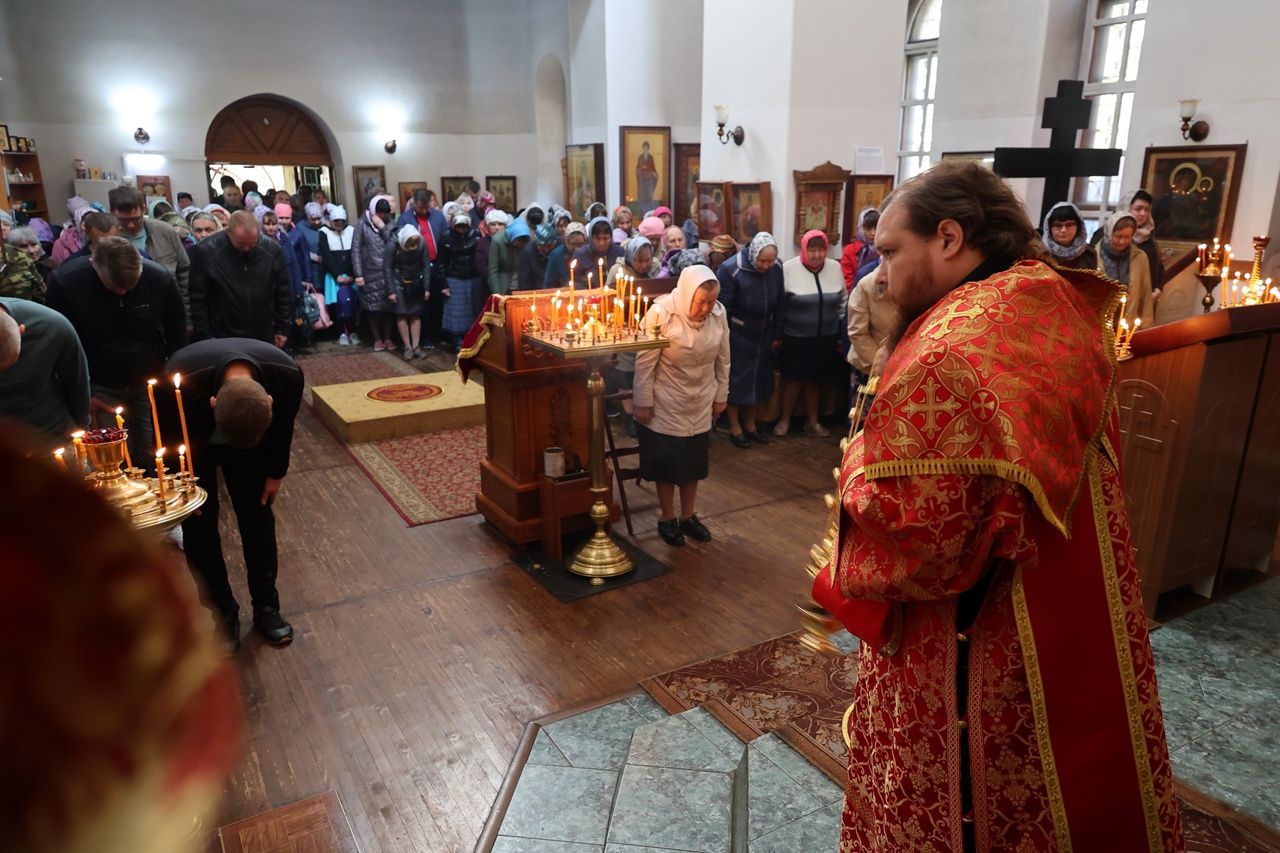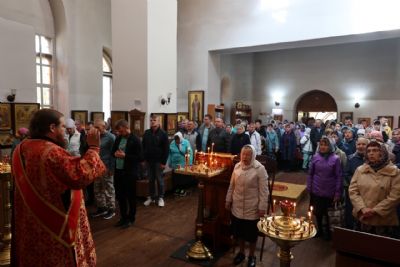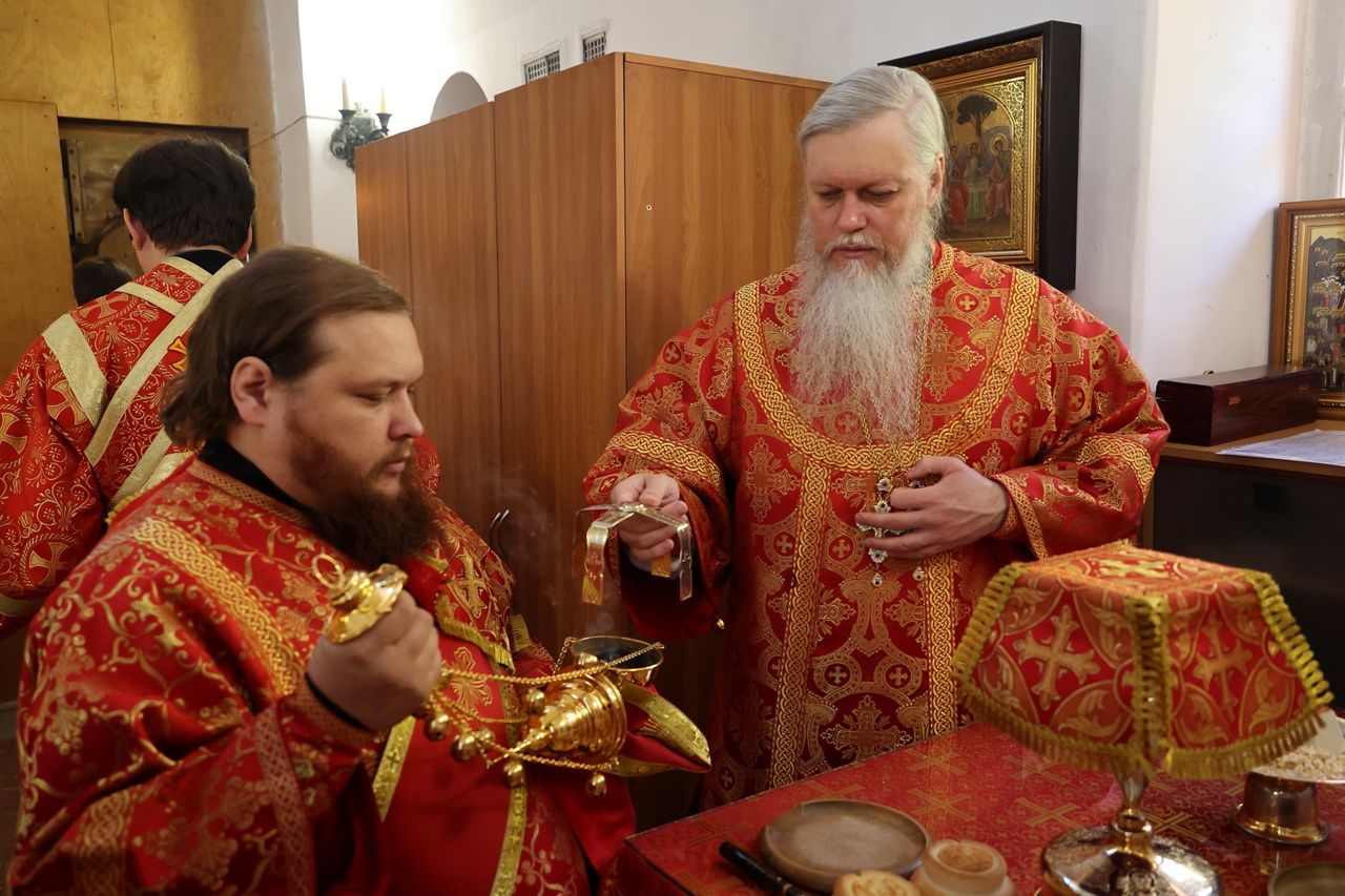 Его Преосвященству сослужили настоятель храма иконы Божией Матери «Всех скорбящих Радость» протоиерей Александр Михайлов и диакон Иоанн Захаров. Песнопения исполнял хор храма под управлением Ирины Канашиной.