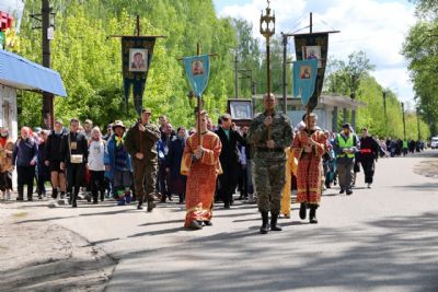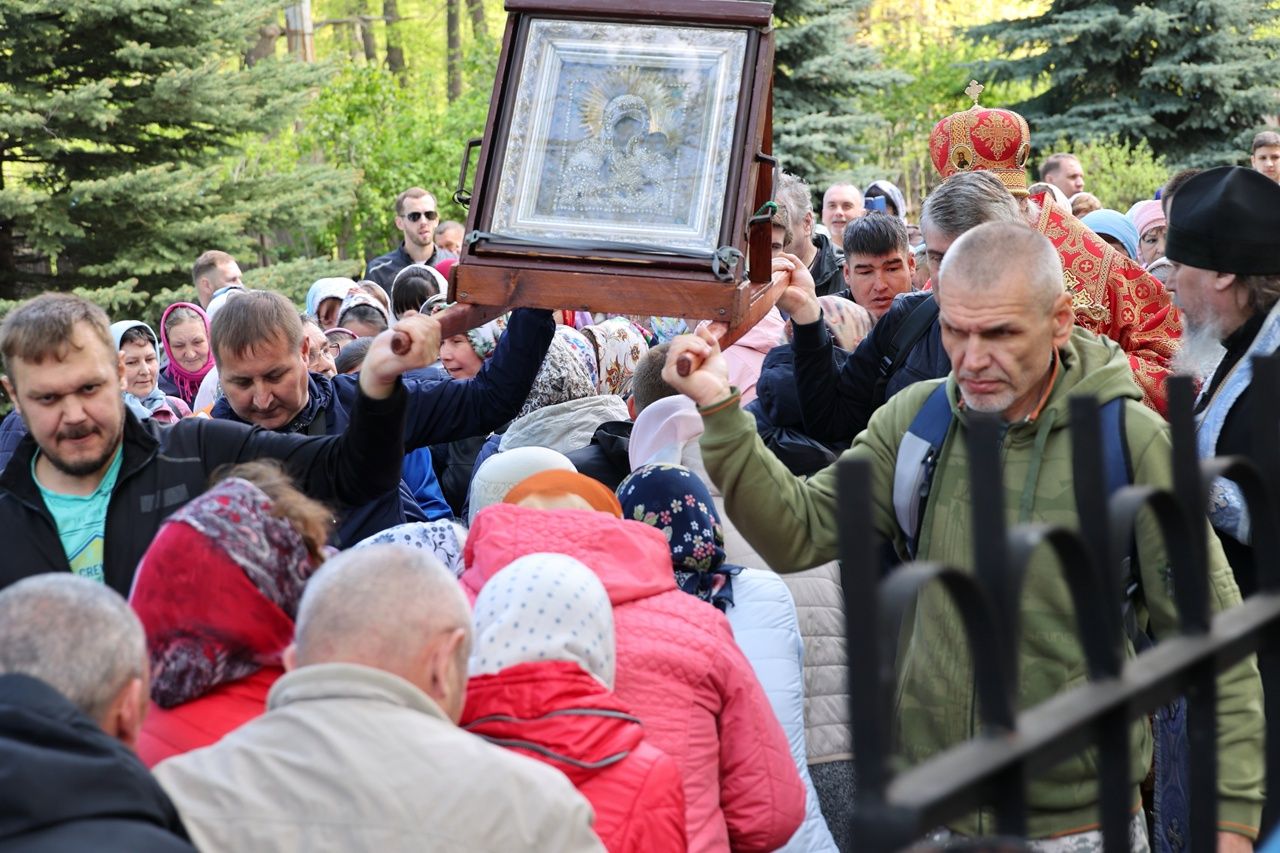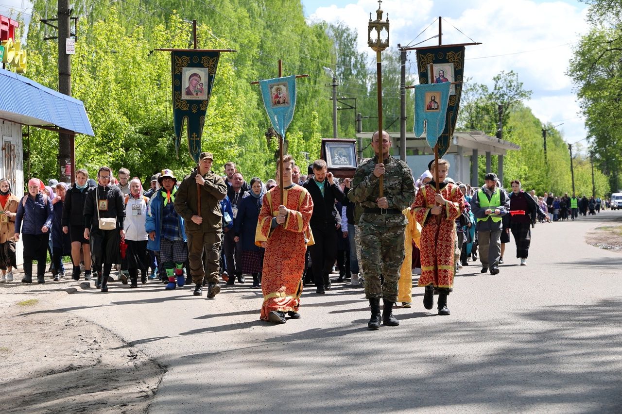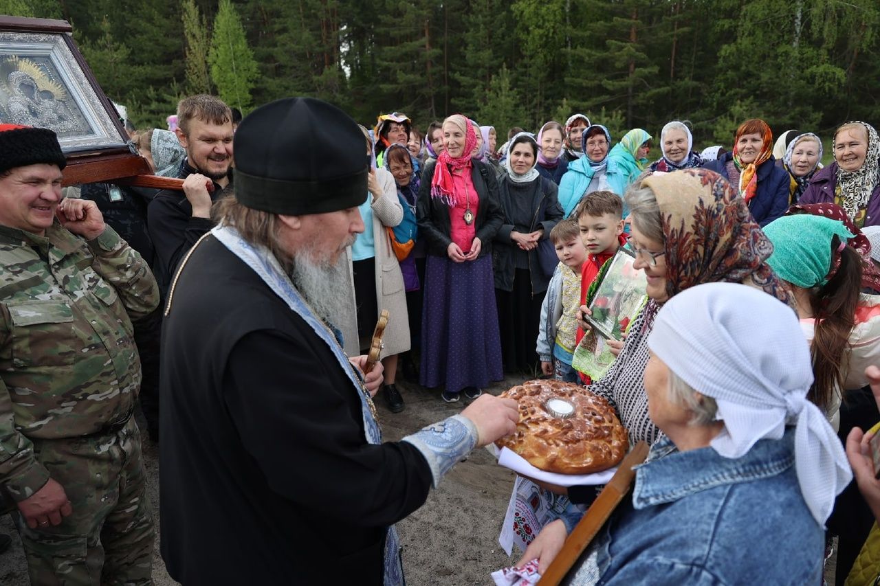 В завершение богослужения епископ Феофан обратился к верующим с архипастырским словом: «Возлюбленные о Господе всечестные отцы, дорогие во Христе братья и сестры! Всем сердцем поздравляю всех вас с продолжающимся праздником Пасхи Христовой. Сегодня в нашей епархии начинается крестный ход. Мы продолжаем эту добрую традицию, которая начата была более 20-ти лет назад. И сегодня здесь находится великая святыня – икона Божией Матери «Смоленская» Седмиезерная. Она привозится сюда из храма святителя Гурия Казанского села Петъялы для того, чтобы люди могли с благоговением поклониться Пречистой Божией Матери, испросить Её молитв и иметь надежду, что ради предстательства Своей Пречистой Матери Господь наш Иисус Христос дарует нам Свою милость, прощение и Свой Божественный Покров в течение нашей земной жизни, а также милость на Суде Своем по смерти, чтобы смогли мы по ходатайству Божией Матери прийти ко Господу с добрым ответом и войти в вечную радость Господа своего».