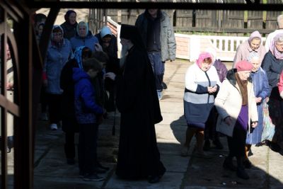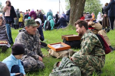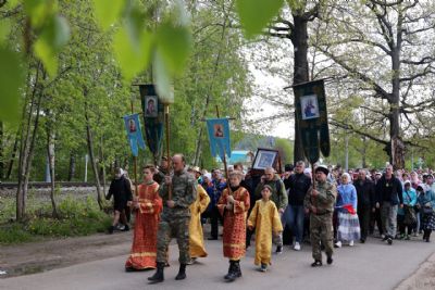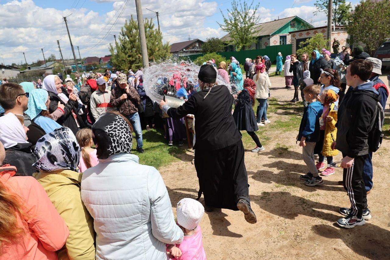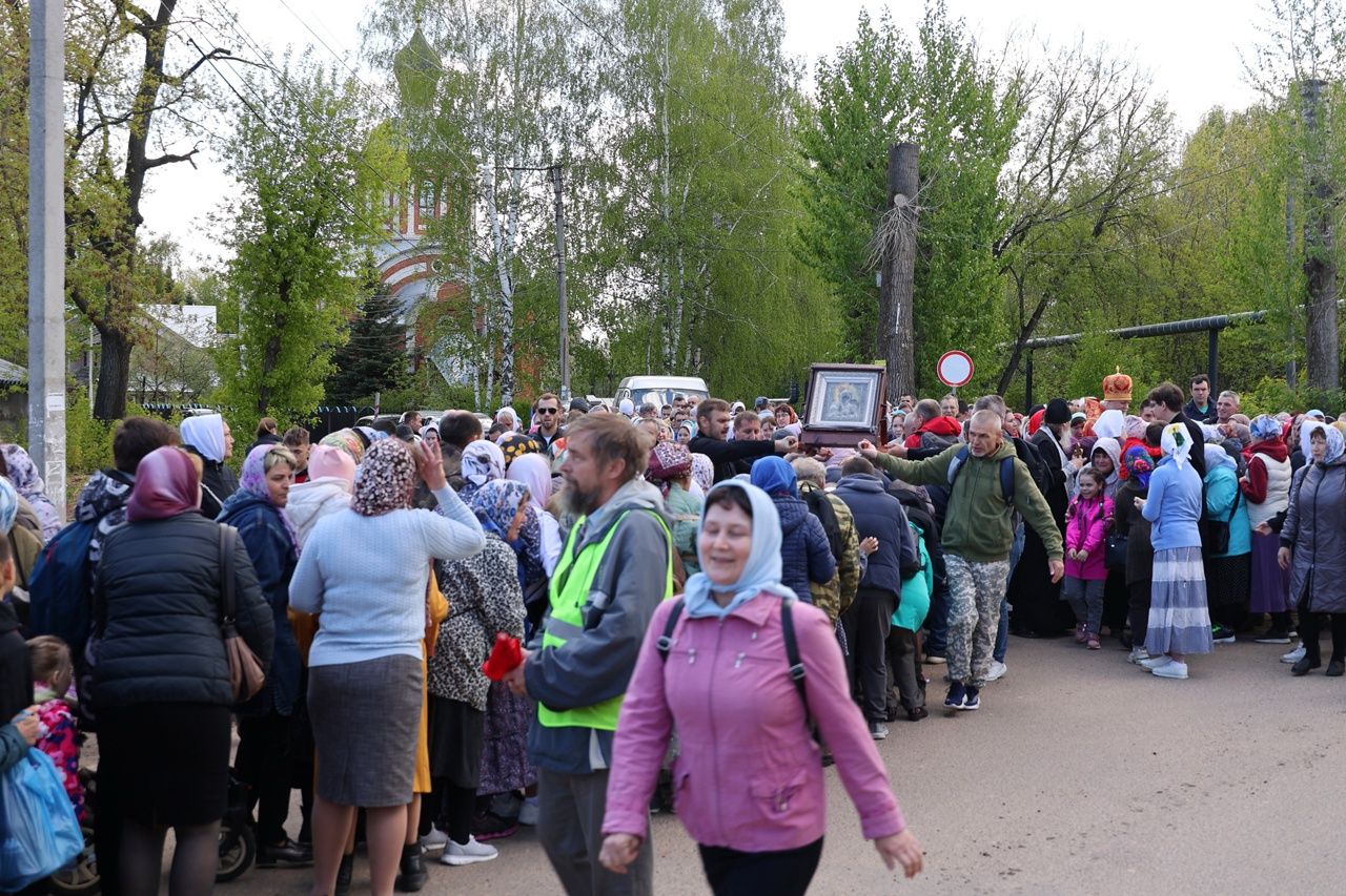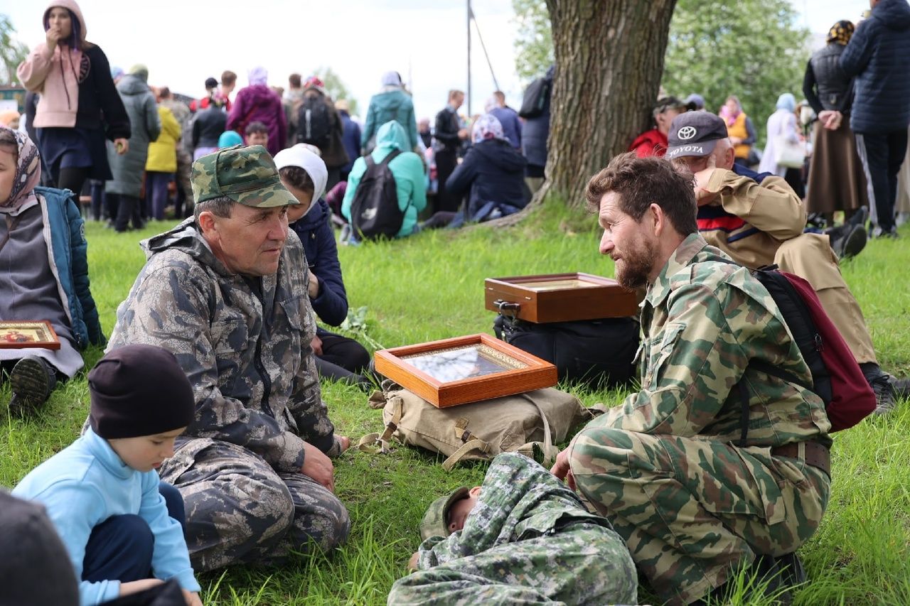 В завершение богослужения епископ Феофан обратился к верующим с архипастырским словом: «Возлюбленные о Господе всечестные отцы, дорогие во Христе братья и сестры! Всем сердцем поздравляю всех вас с продолжающимся праздником Пасхи Христовой. Сегодня в нашей епархии начинается крестный ход. Мы продолжаем эту добрую традицию, которая начата была более 20-ти лет назад. И сегодня здесь находится великая святыня – икона Божией Матери «Смоленская» Седмиезерная. Она привозится сюда из храма святителя Гурия Казанского села Петъялы для того, чтобы люди могли с благоговением поклониться Пречистой Божией Матери, испросить Её молитв и иметь надежду, что ради предстательства Своей Пречистой Матери Господь наш Иисус Христос дарует нам Свою милость, прощение и Свой Божественный Покров в течение нашей земной жизни, а также милость на Суде Своем по смерти, чтобы смогли мы по ходатайству Божией Матери прийти ко Господу с добрым ответом и войти в вечную радость Господа своего».