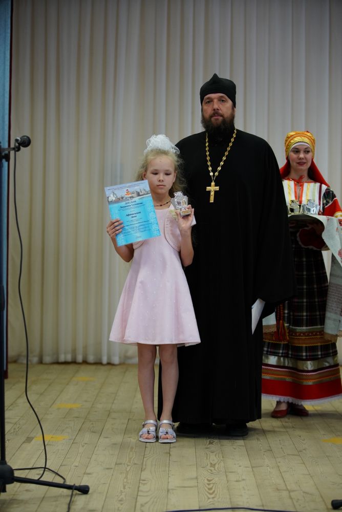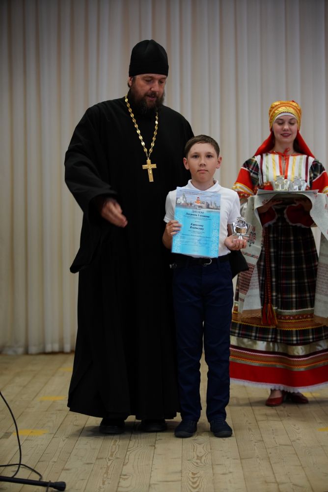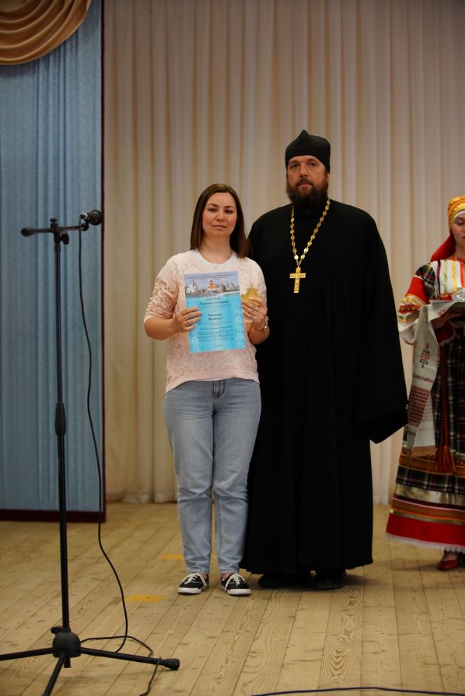 Также на сцене состоялось награждение школьников – победителей проходившей 13-27 мая литературной викторины ко Дню русского языка в Республике Марий Эл. Дипломы ребятам вручил руководитель отдела религиозного образования и катехизации Йошкар-Олинской епархии, благочинный Йошкар-Олинского церковного округа протоиерей Андрей Норкин.
