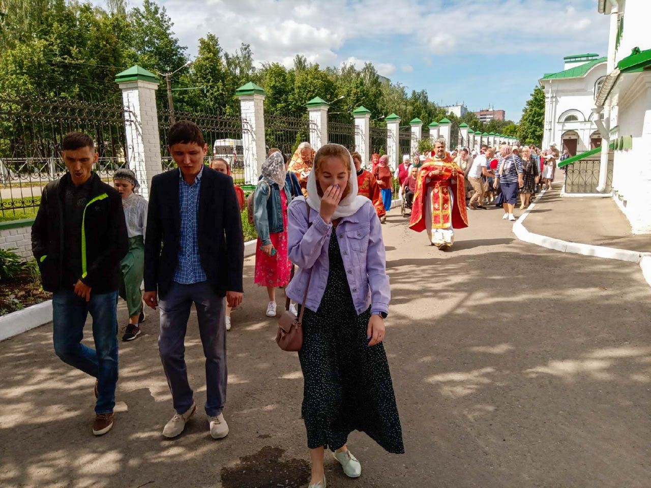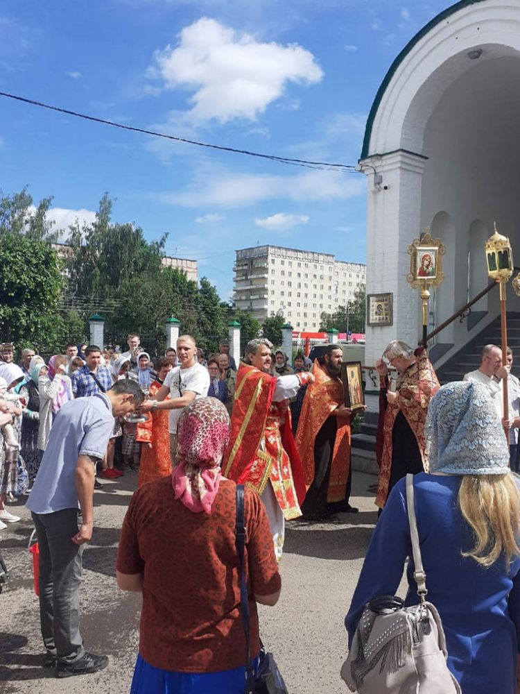 После Литургии, по традиции, прошел крестный ход вокруг храма со чтением Евангелия и кроплением святой водой и была вознесена молитва священномученику Николаю – молитвеннику о Марийской земле.