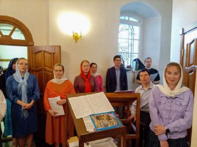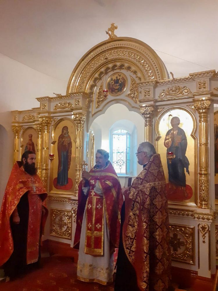 Божественную литургию в нижнем приделе возглавил настоятель храма иерей Александр Лоскутов. Литургические песнопения исполнял хор православных добровольцев под управлением регента Любови Торощиной.